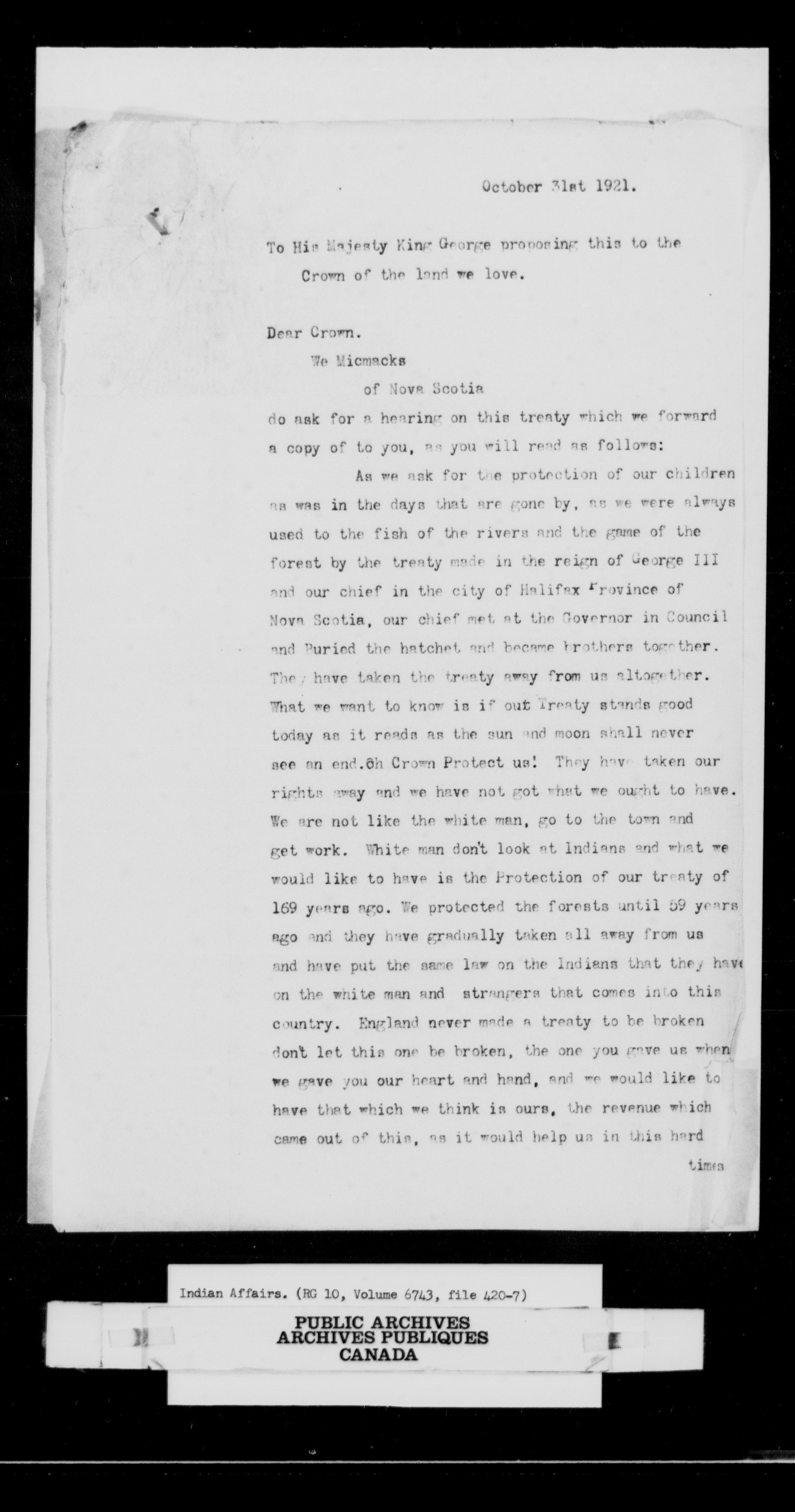 Department of Indian Affairs, Headquarters central registry system : First series : volume 6742, file 420-6 to vol. 6744, file 420-6C - 8101