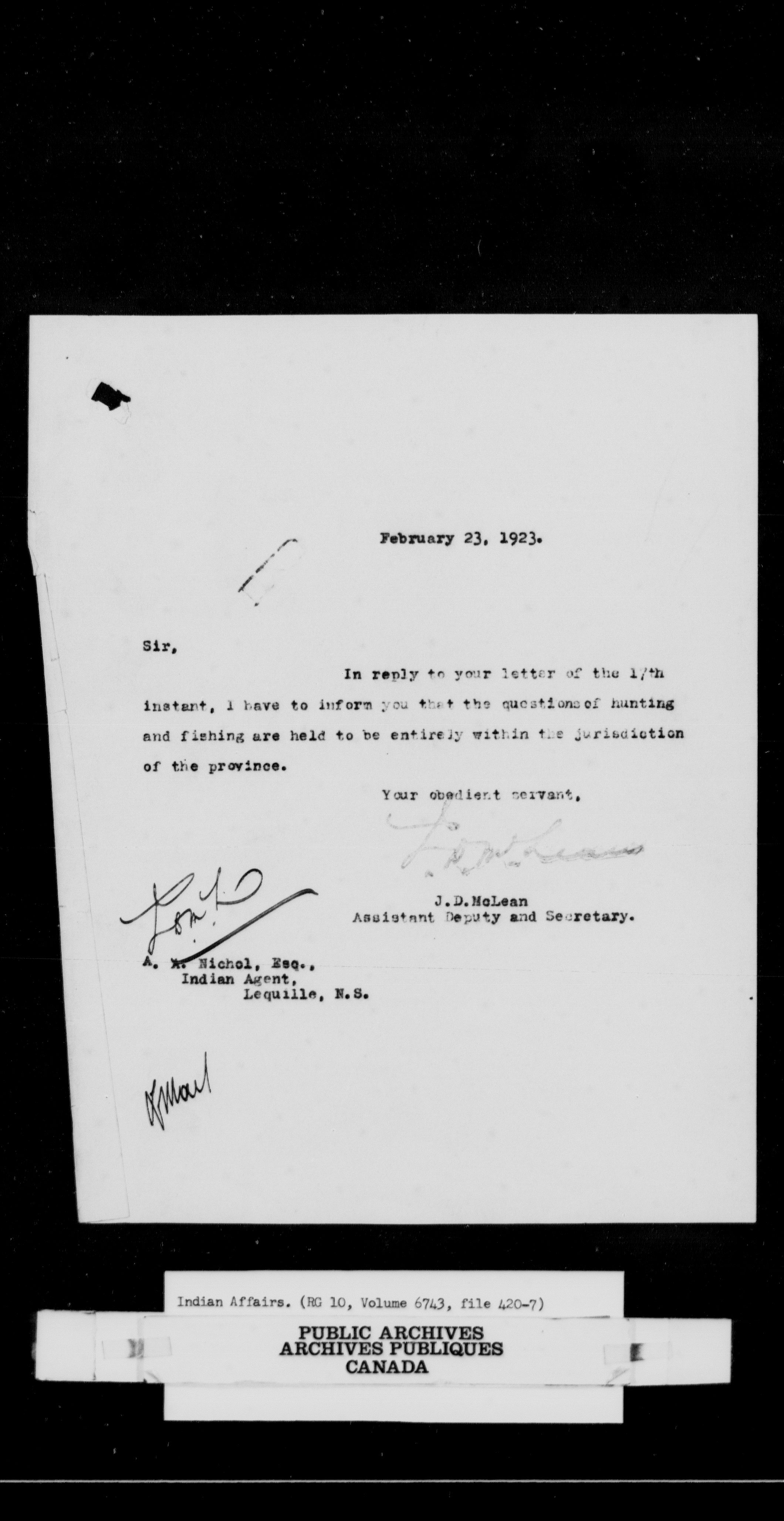 Department of Indian Affairs, Headquarters central registry system : First series : volume 6742, file 420-6 to vol. 6744, file 420-6C - 8101