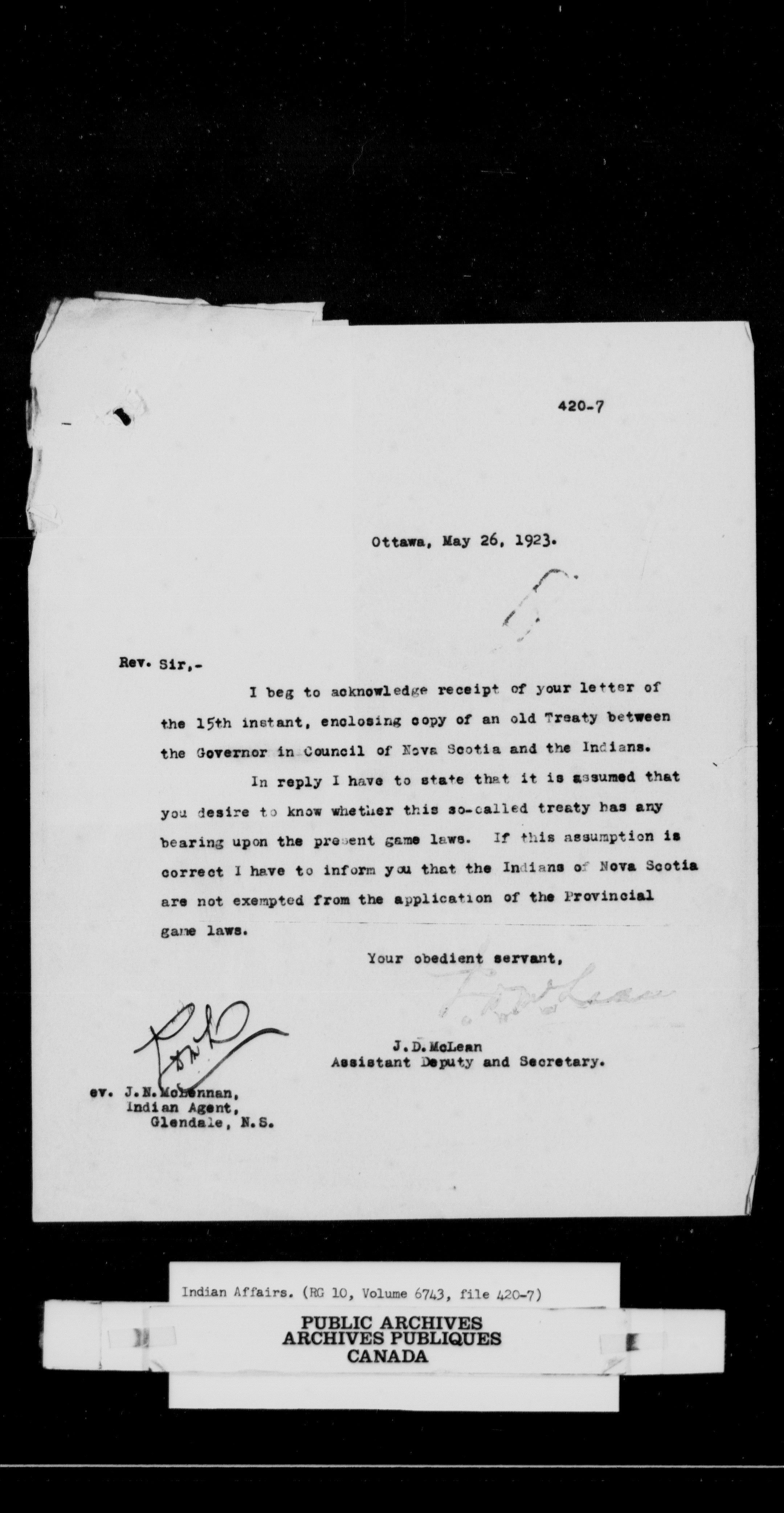 Department of Indian Affairs, Headquarters central registry system : First series : volume 6742, file 420-6 to vol. 6744, file 420-6C - 8101