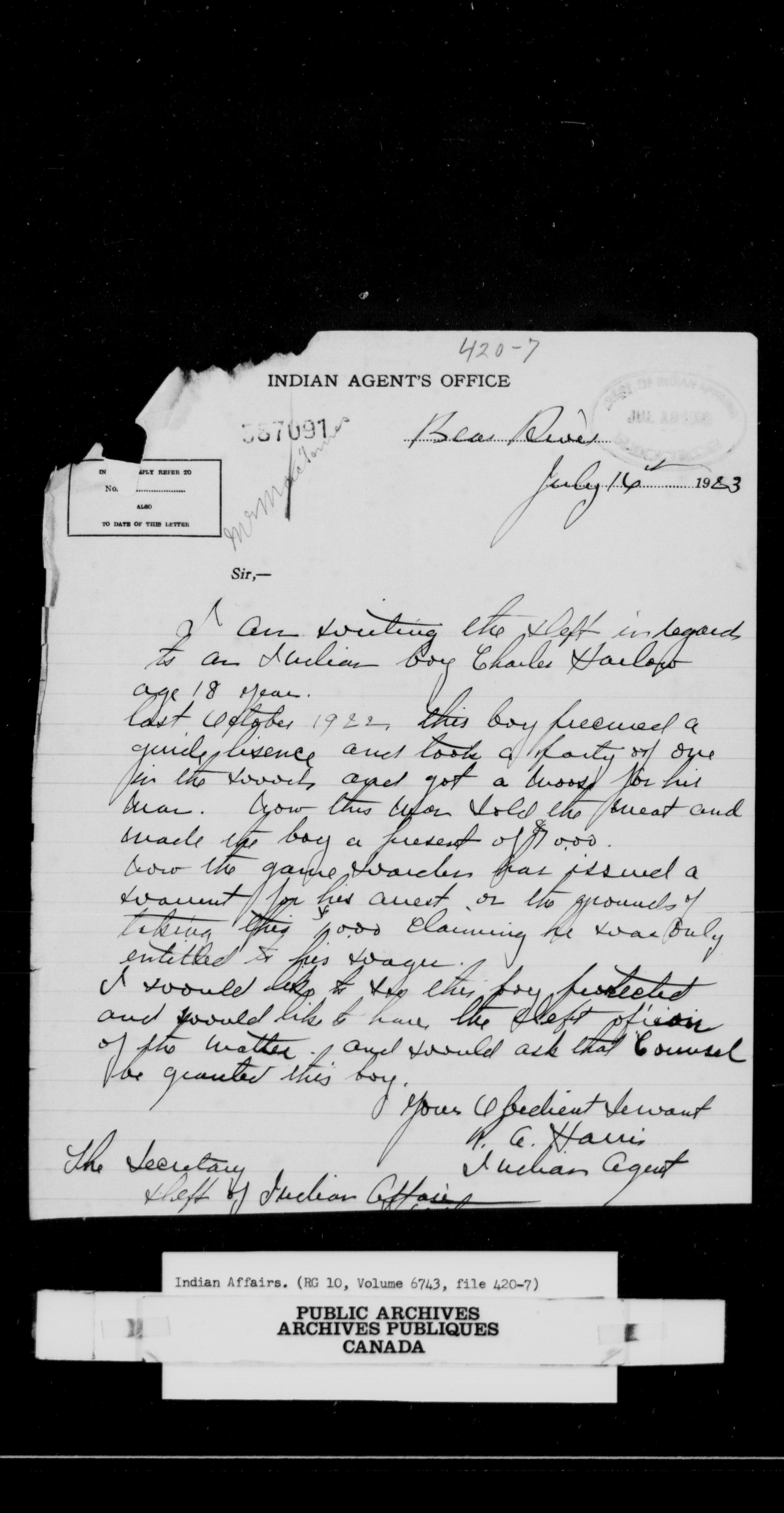 Department of Indian Affairs, Headquarters central registry system : First series : volume 6742, file 420-6 to vol. 6744, file 420-6C - 8101