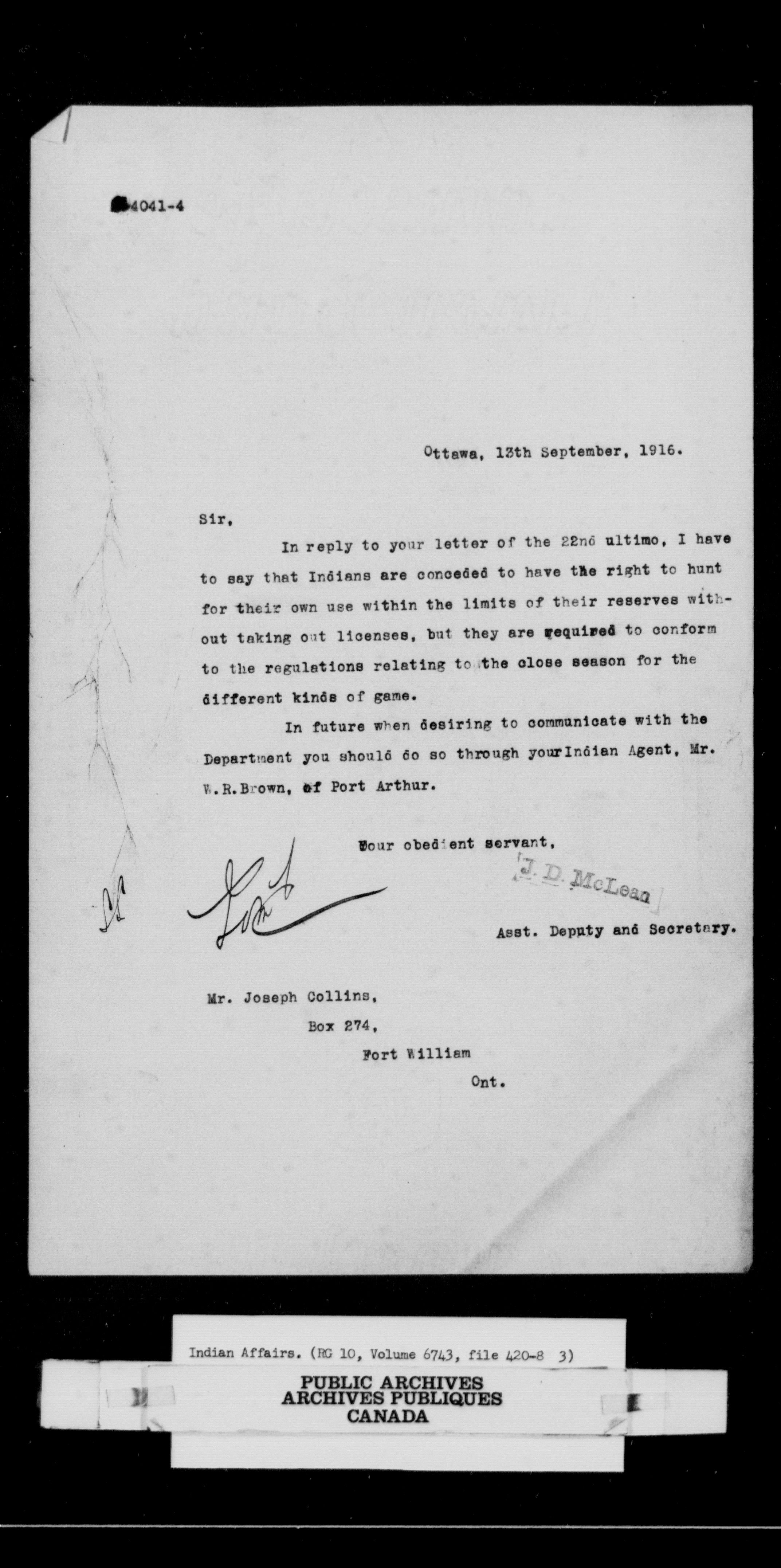 Department of Indian Affairs, Headquarters central registry system : First series : volume 6742, file 420-6 to vol. 6744, file 420-6C - 8101