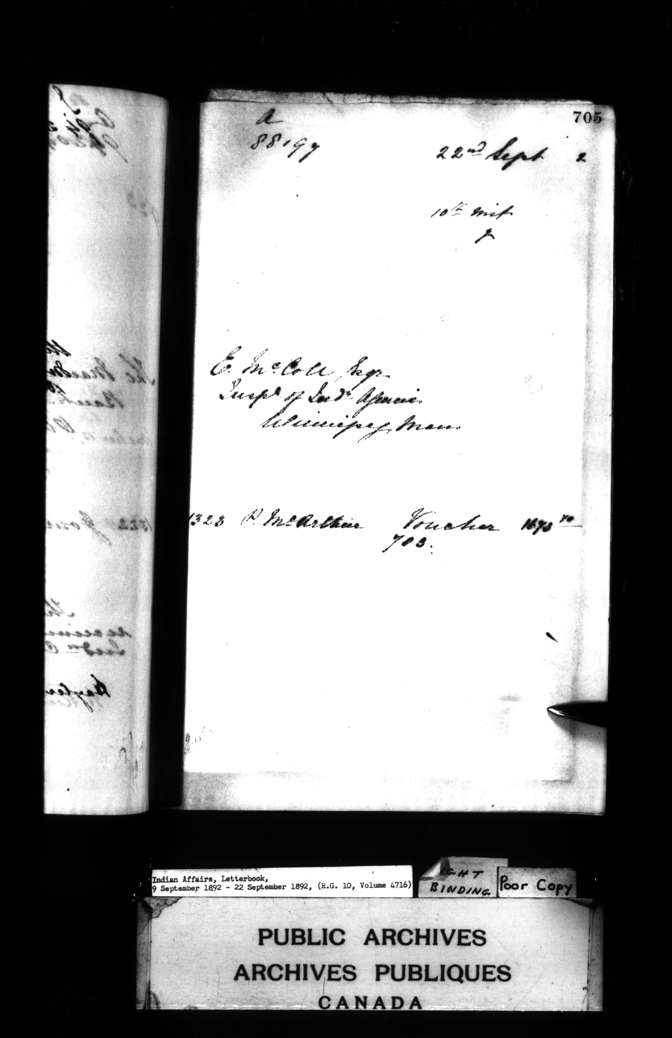 Indian Affairs, Letterbook, 9 September 1892 - 22 September 1892