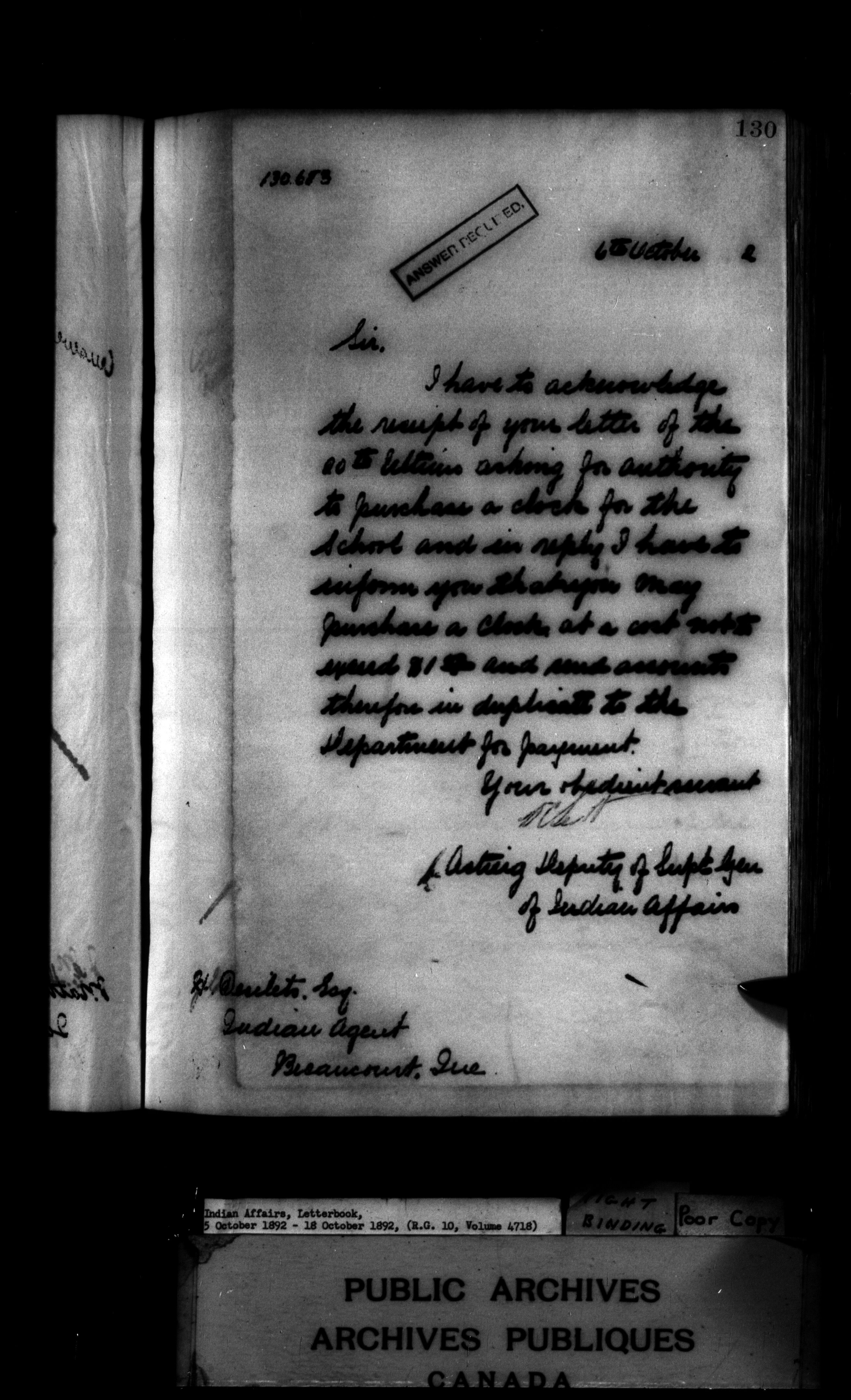 Indian Affairs, Letterbook, 5 October 1892 - 18 October 1892