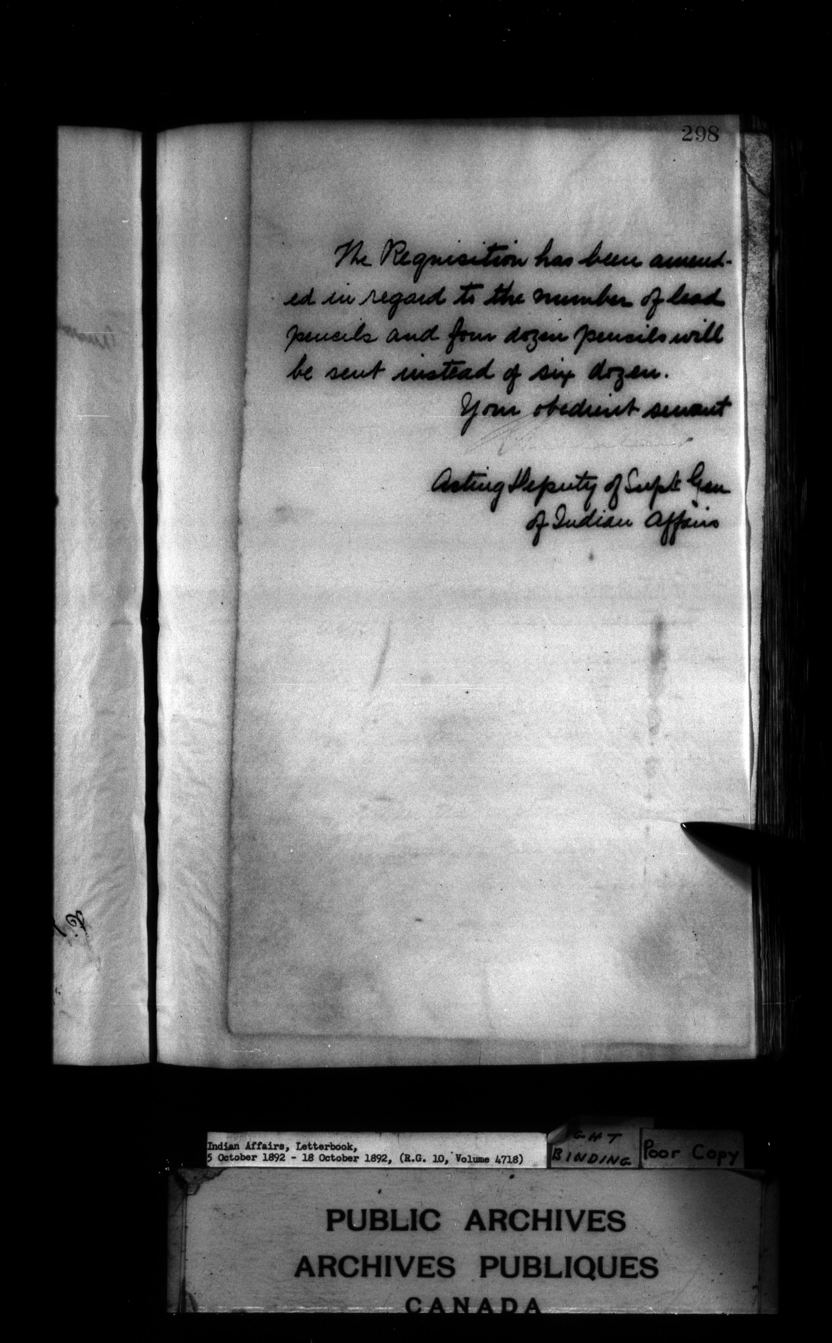 Indian Affairs, Letterbook, 18 October 1892 - 4 November 1892