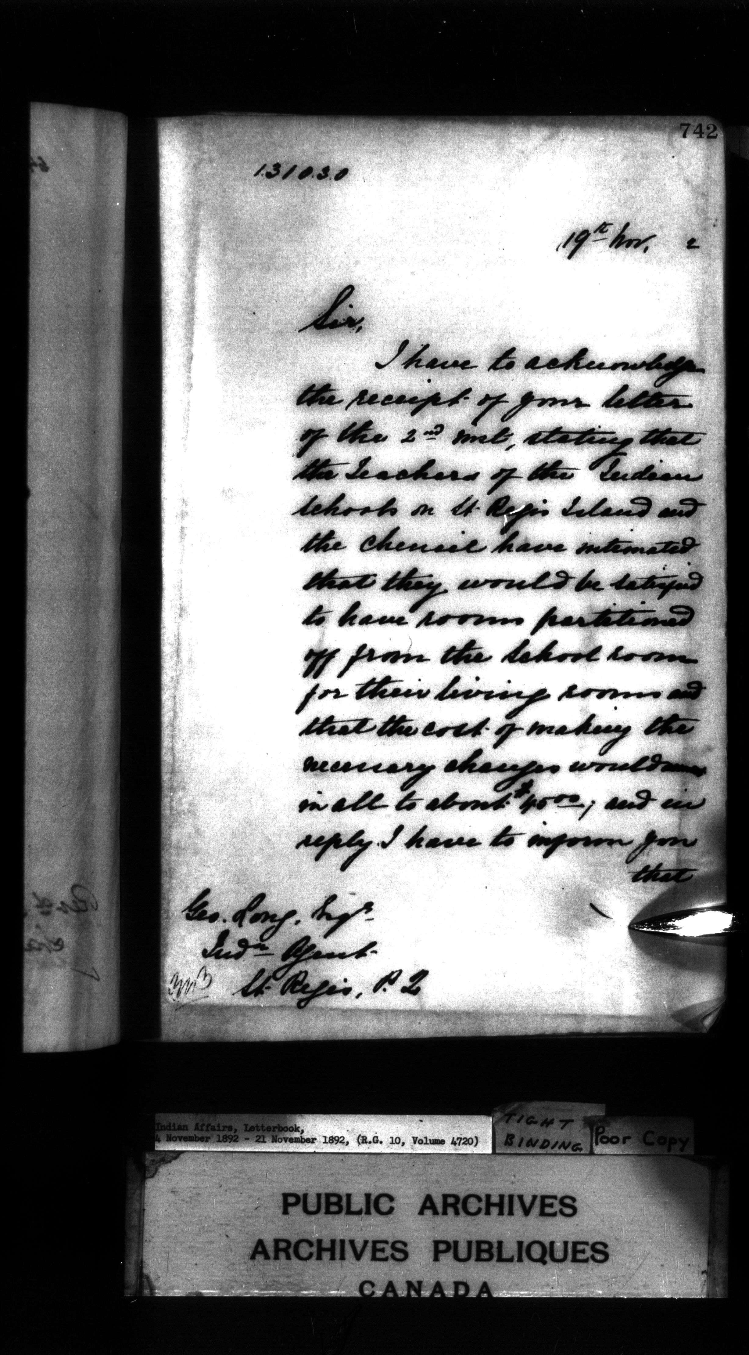 Indian Affairs, Letterbook, 18 October 1892 - 4 November 1892