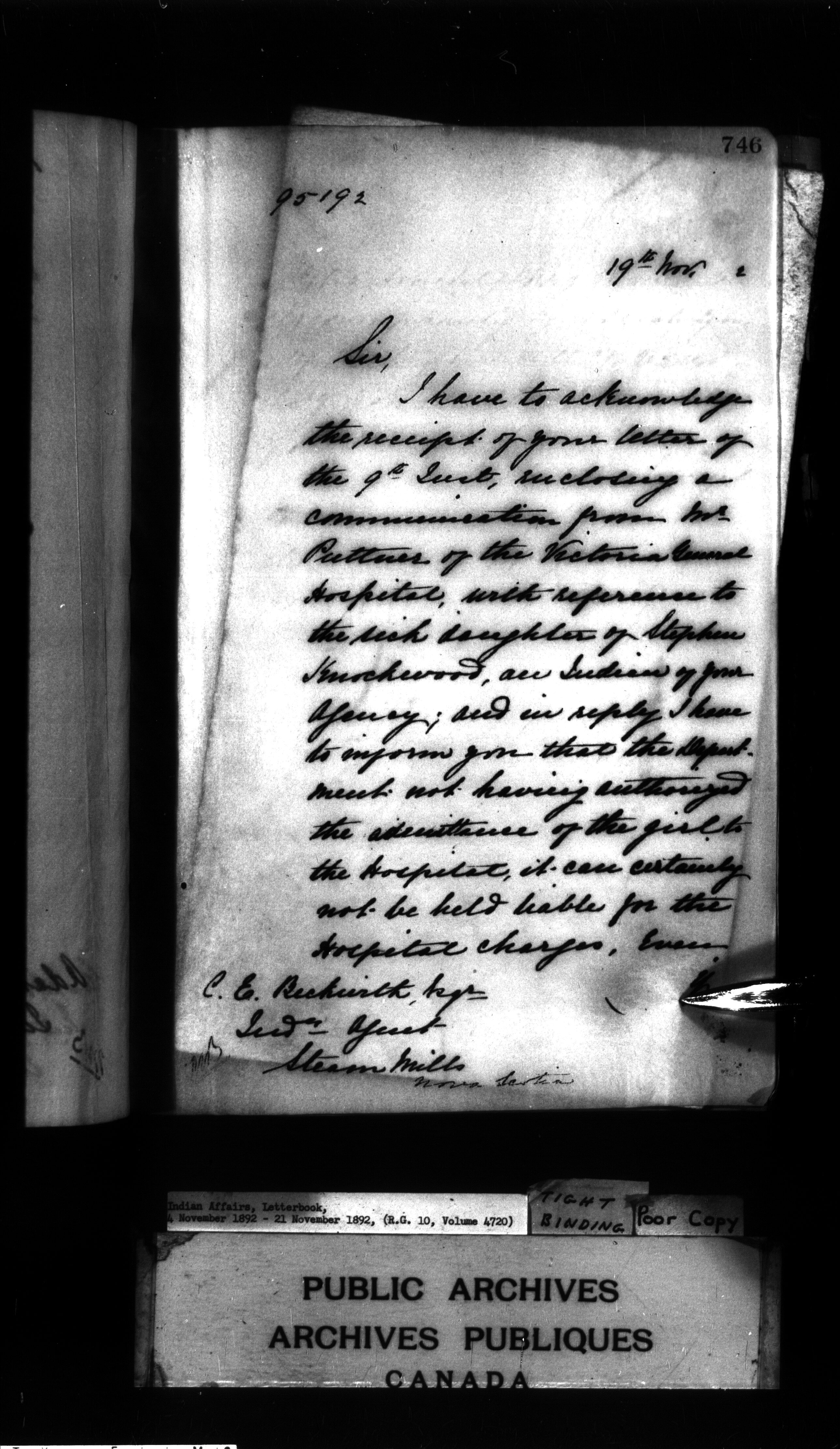 Indian Affairs, Letterbook, 4 November 1892 - 21 November 1892
