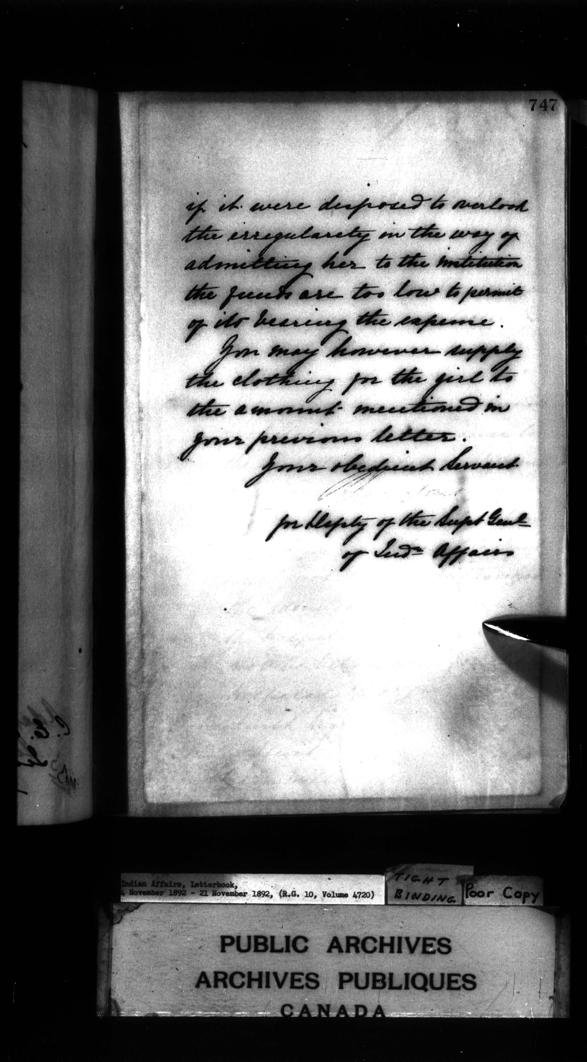 Indian Affairs, Letterbook, 21 November 1892 - 7 December 1892