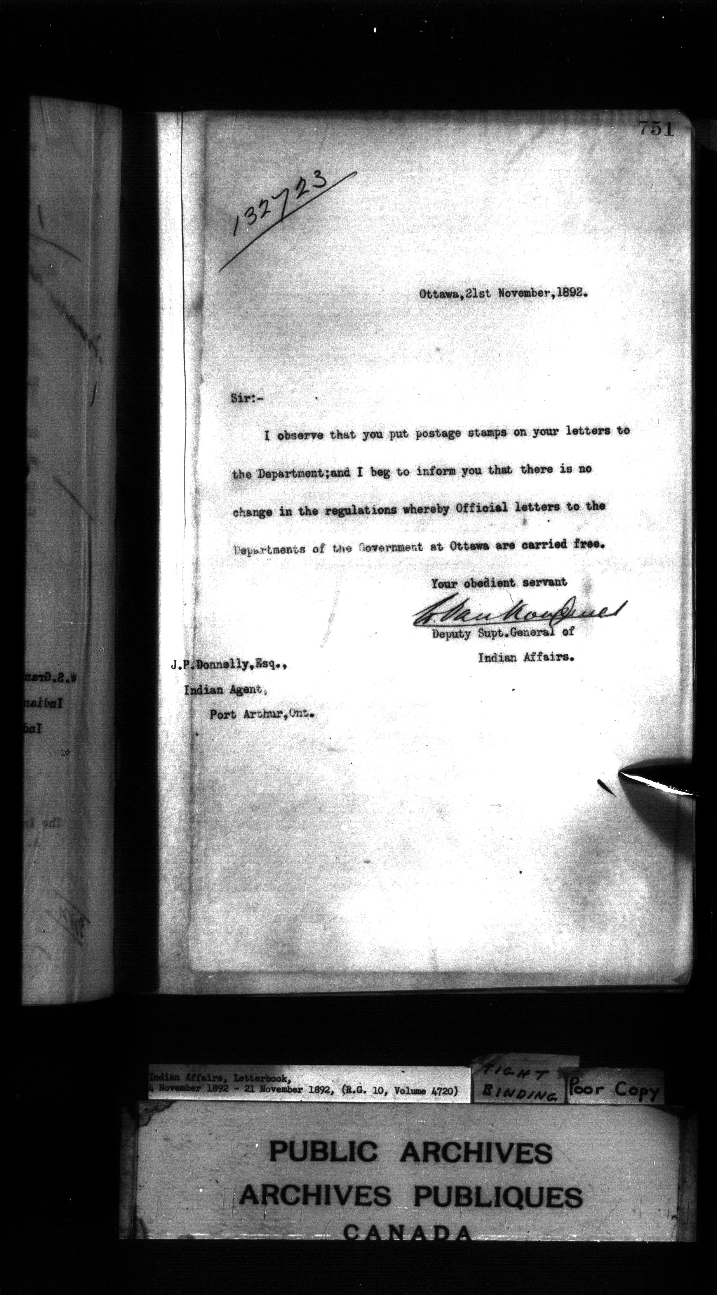 Indian Affairs, Letterbook, 21 November 1892 - 7 December 1892