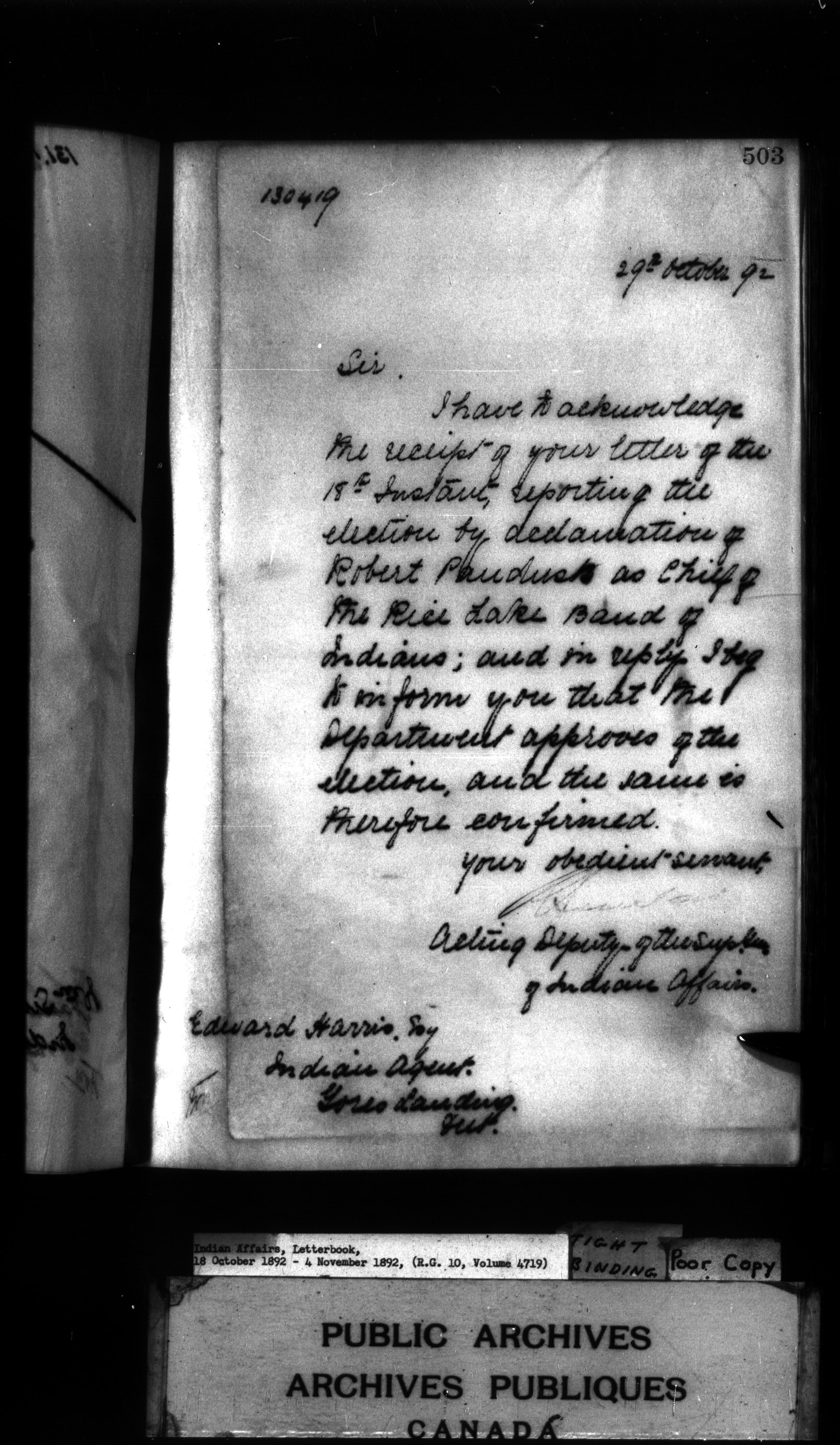 Indian Affairs, Letterbook, 18 October 1892 - 4 November 1892