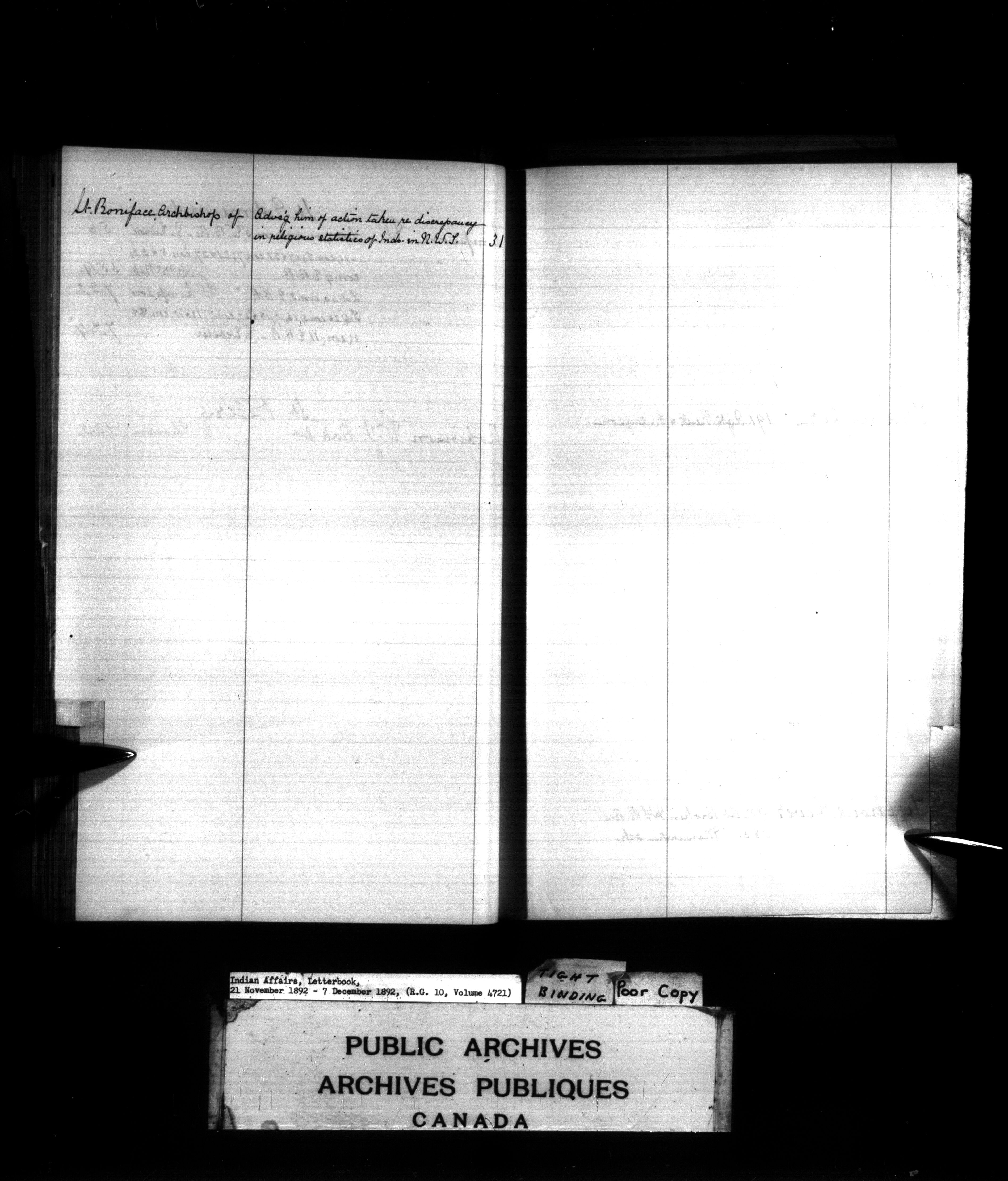 Indian Affairs, Letterbook, 21 November 1892 - 7 December 1892