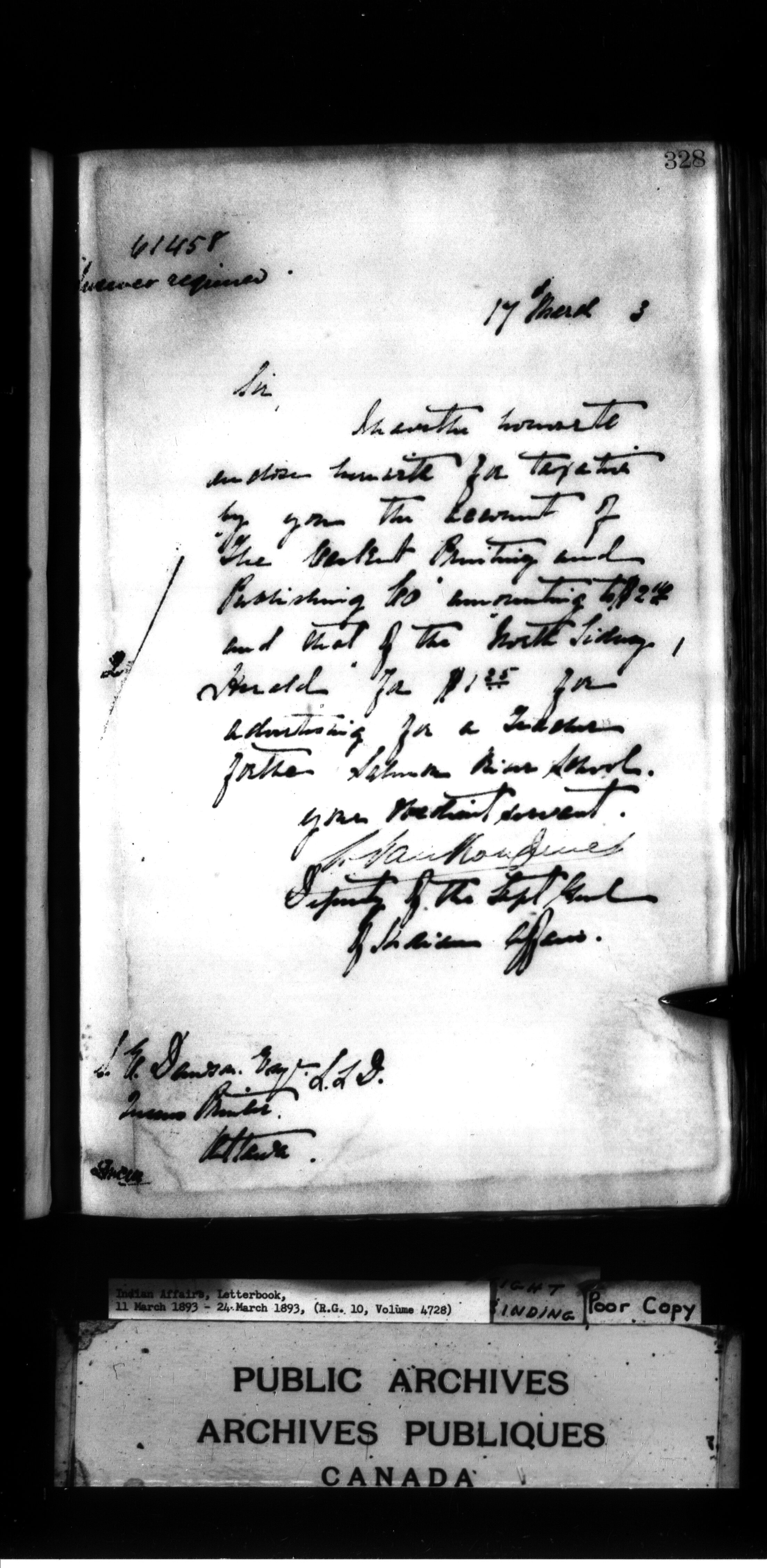 Indian Affairs, Letterbook, 11 March 1893 - 24 March 1893
