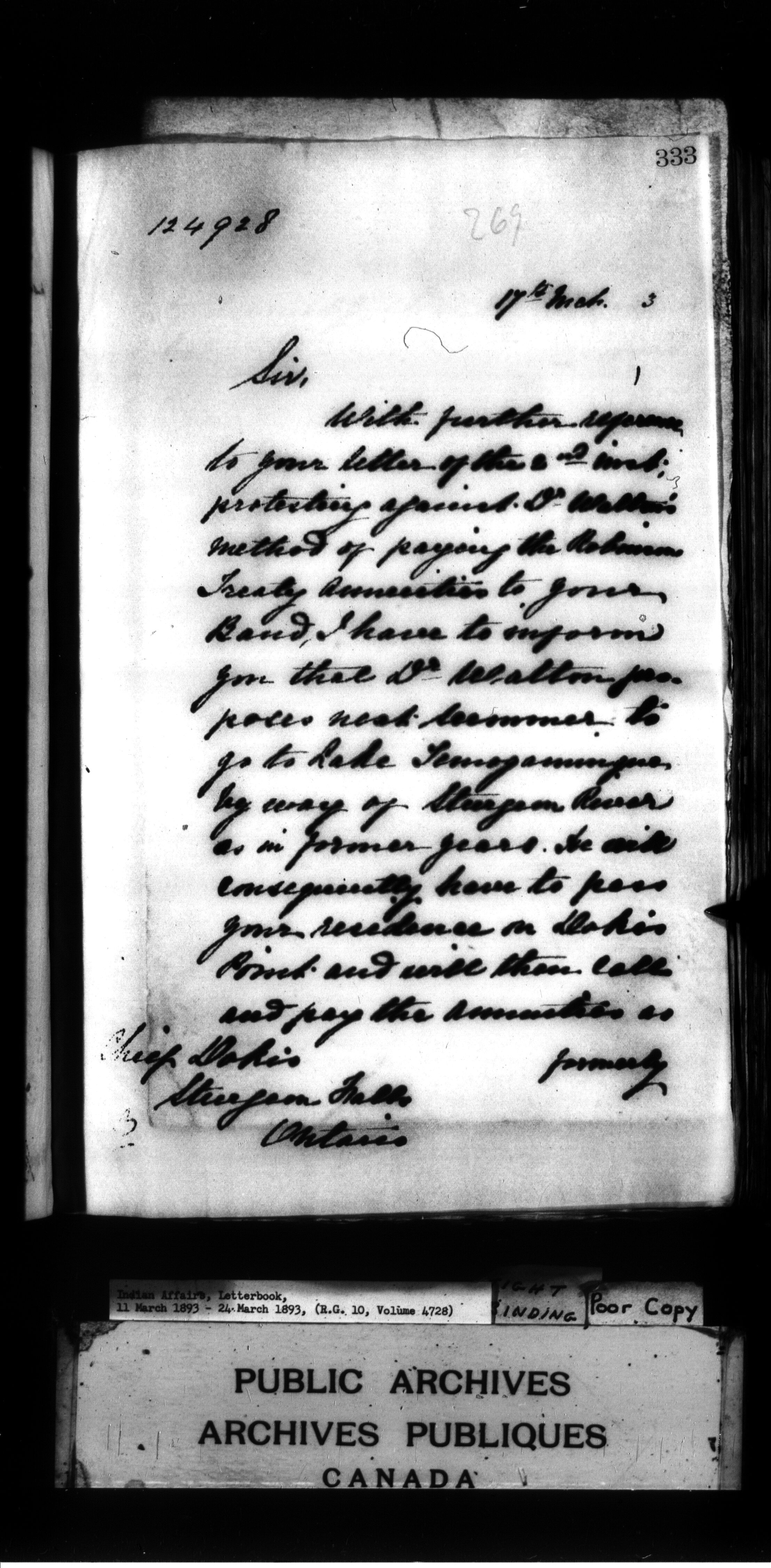 Indian Affairs, Letterbook, 11 March 1893 - 24 March 1893