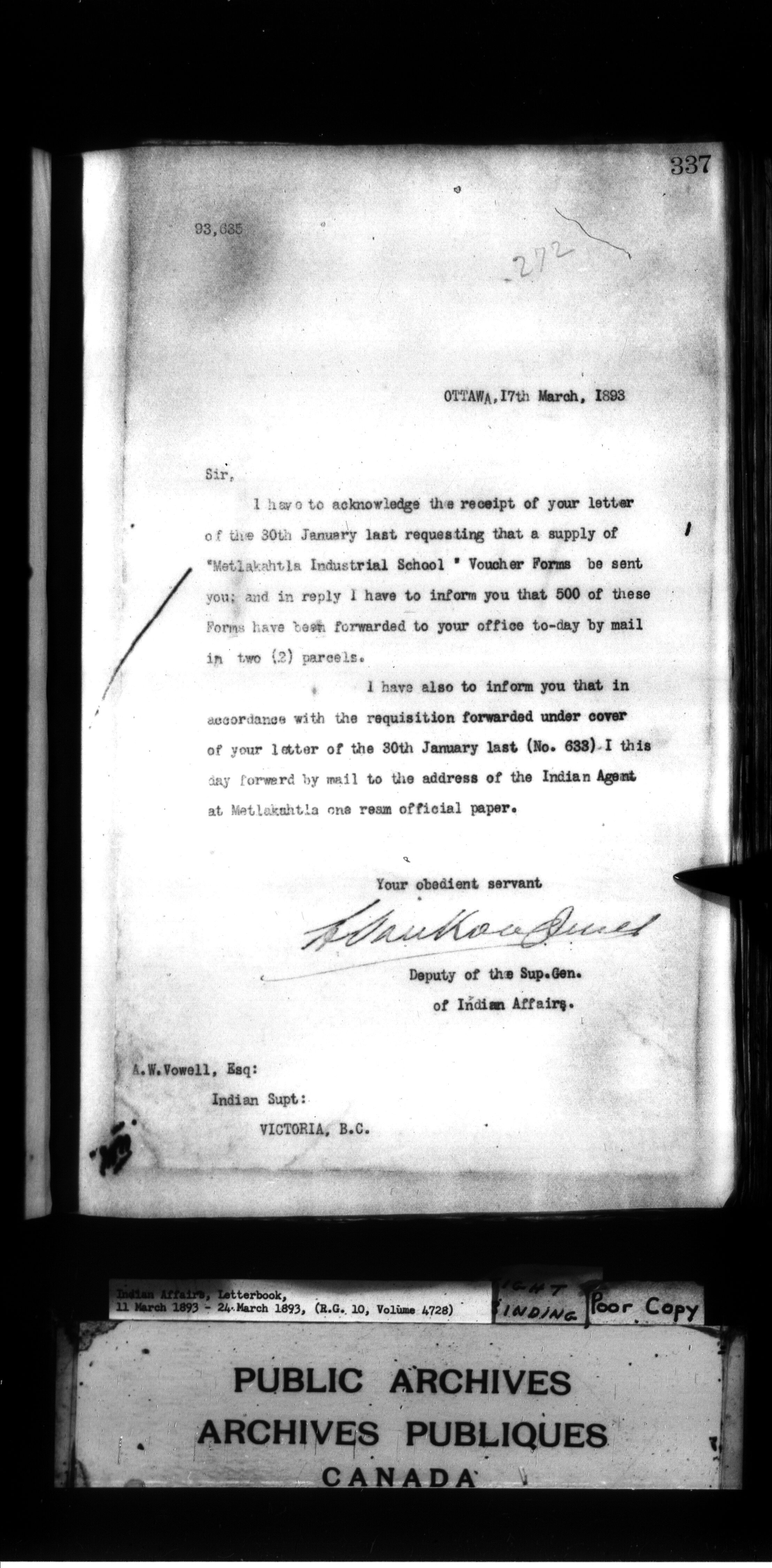 Indian Affairs, Letterbook, 24 February 1893 - 11 March 1893