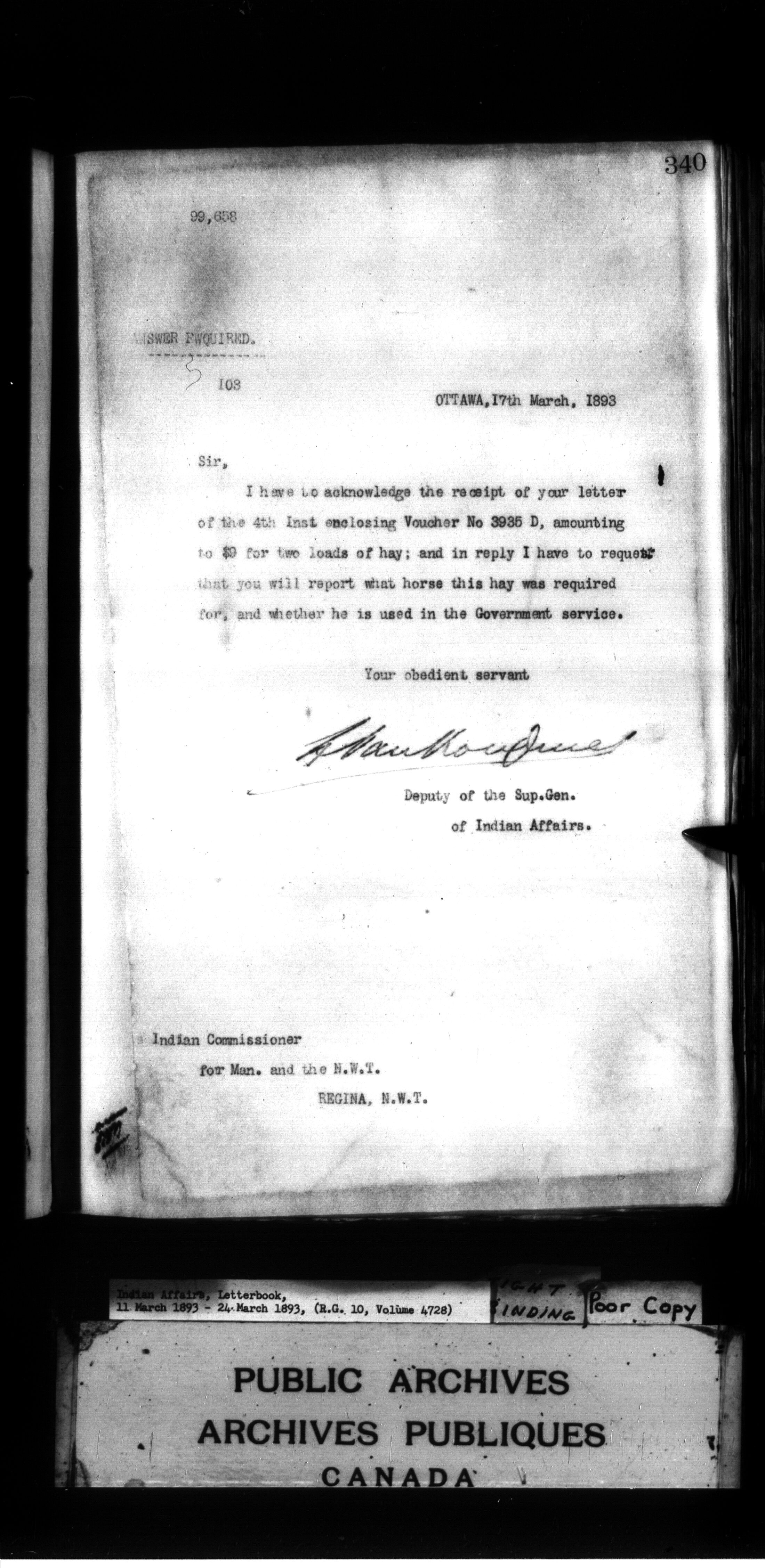Indian Affairs, Letterbook, 11 March 1893 - 24 March 1893