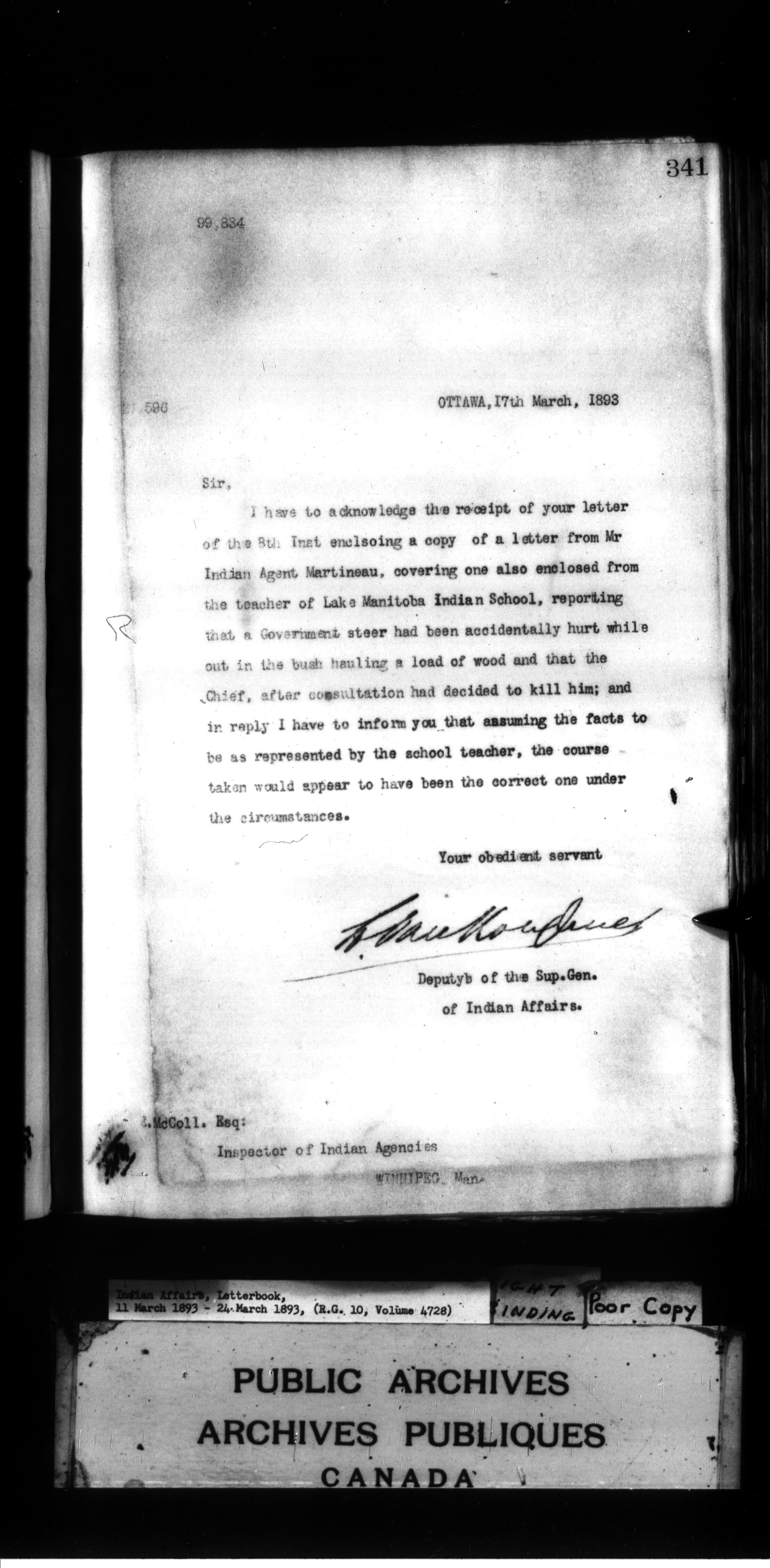 Indian Affairs, Letterbook, 11 March 1893 - 24 March 1893