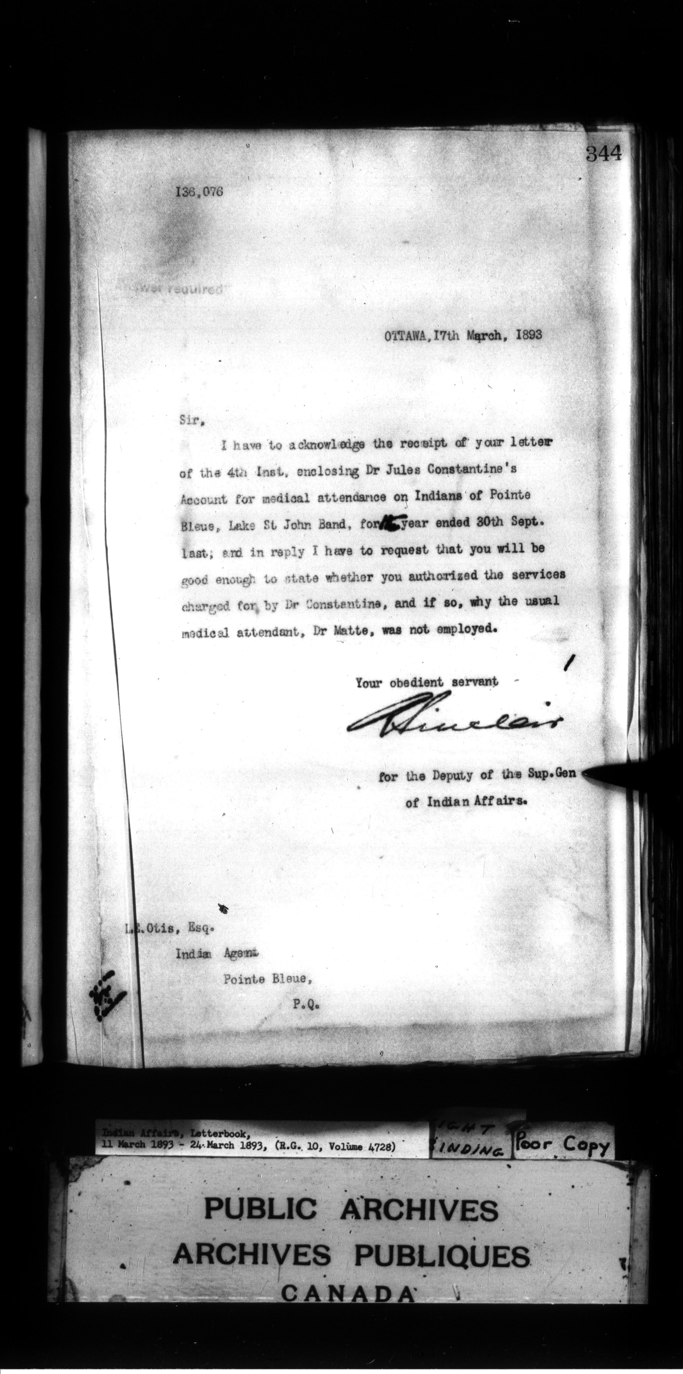 Indian Affairs, Letterbook, 11 March 1893 - 24 March 1893