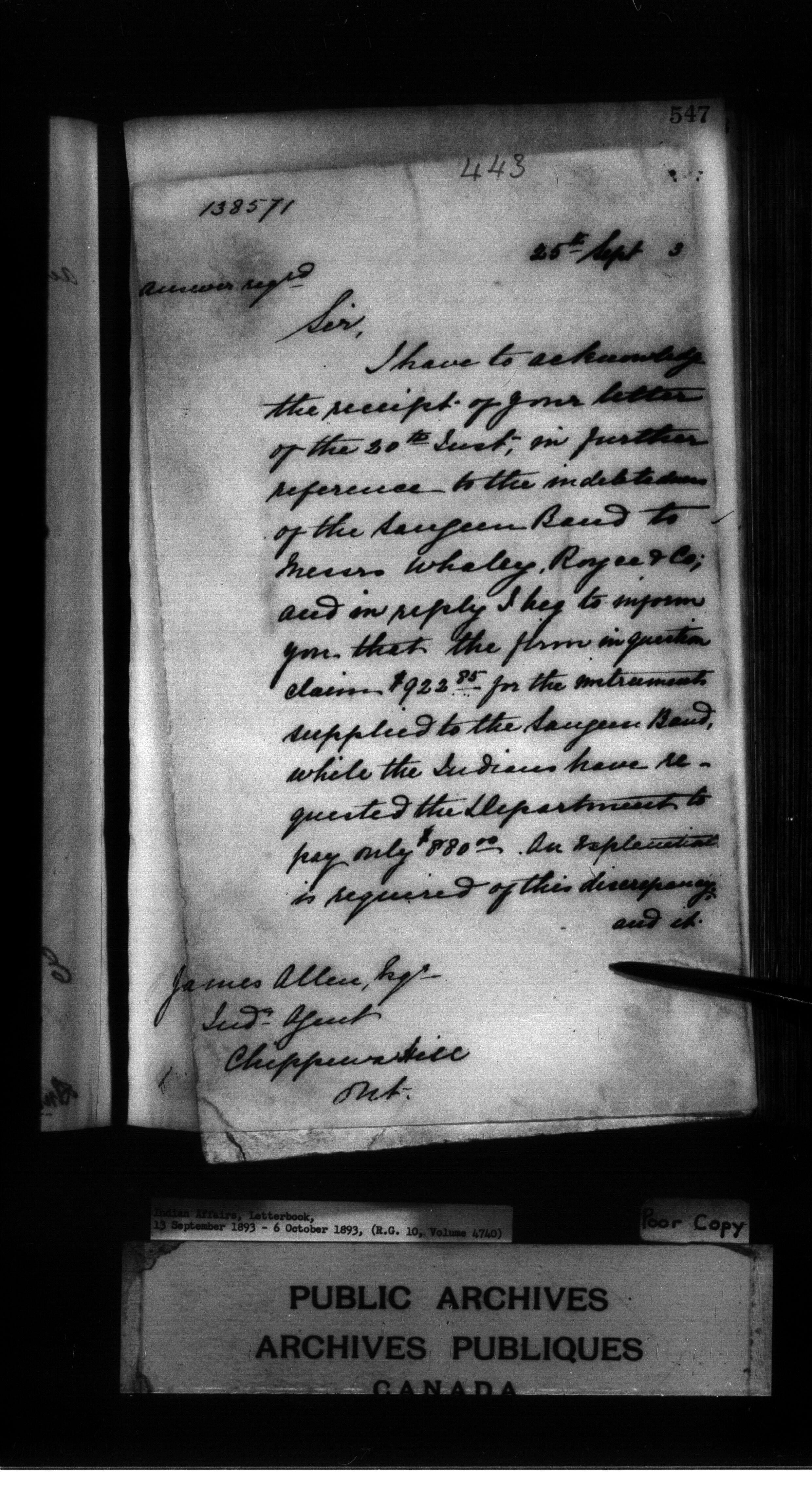 Indian Affairs, Letterbook, 13 September 1893 - 6 October 1893
