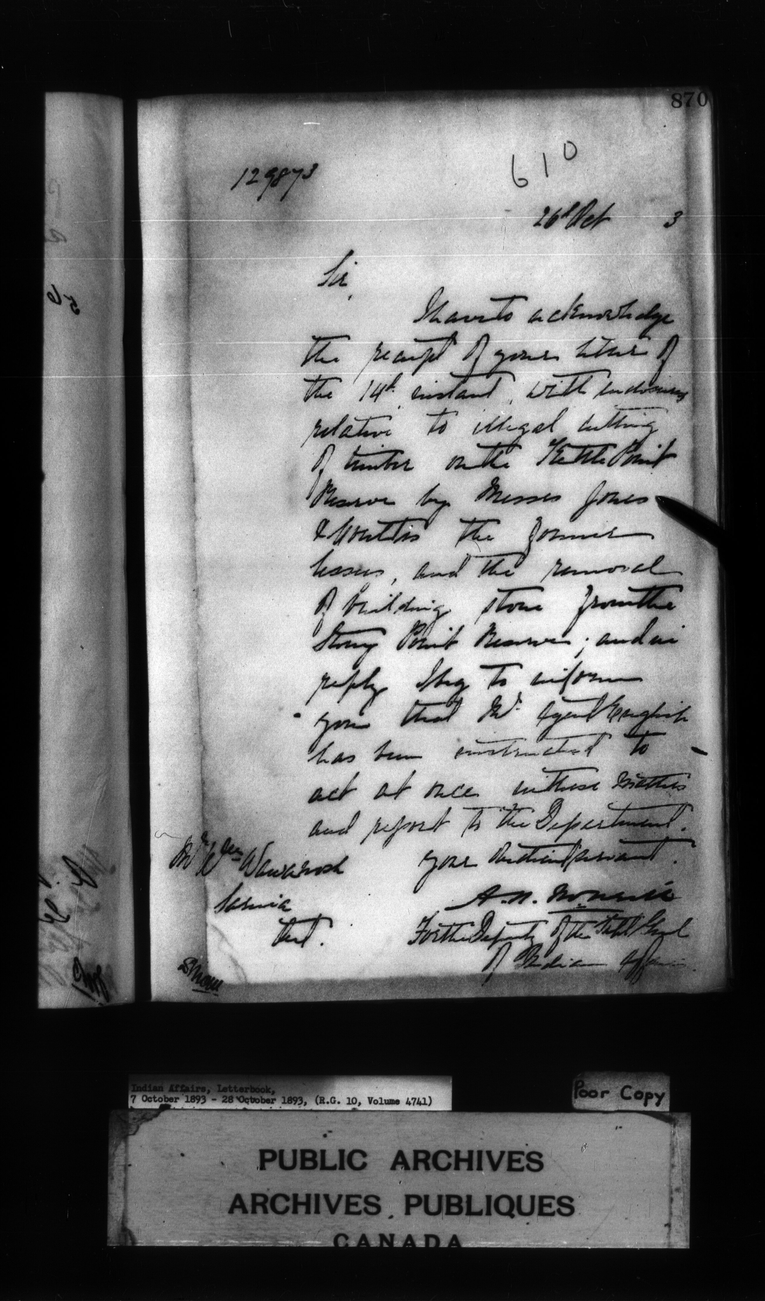 Indian Affairs, Letterbook, 7 October 1893 - 28 October 1893