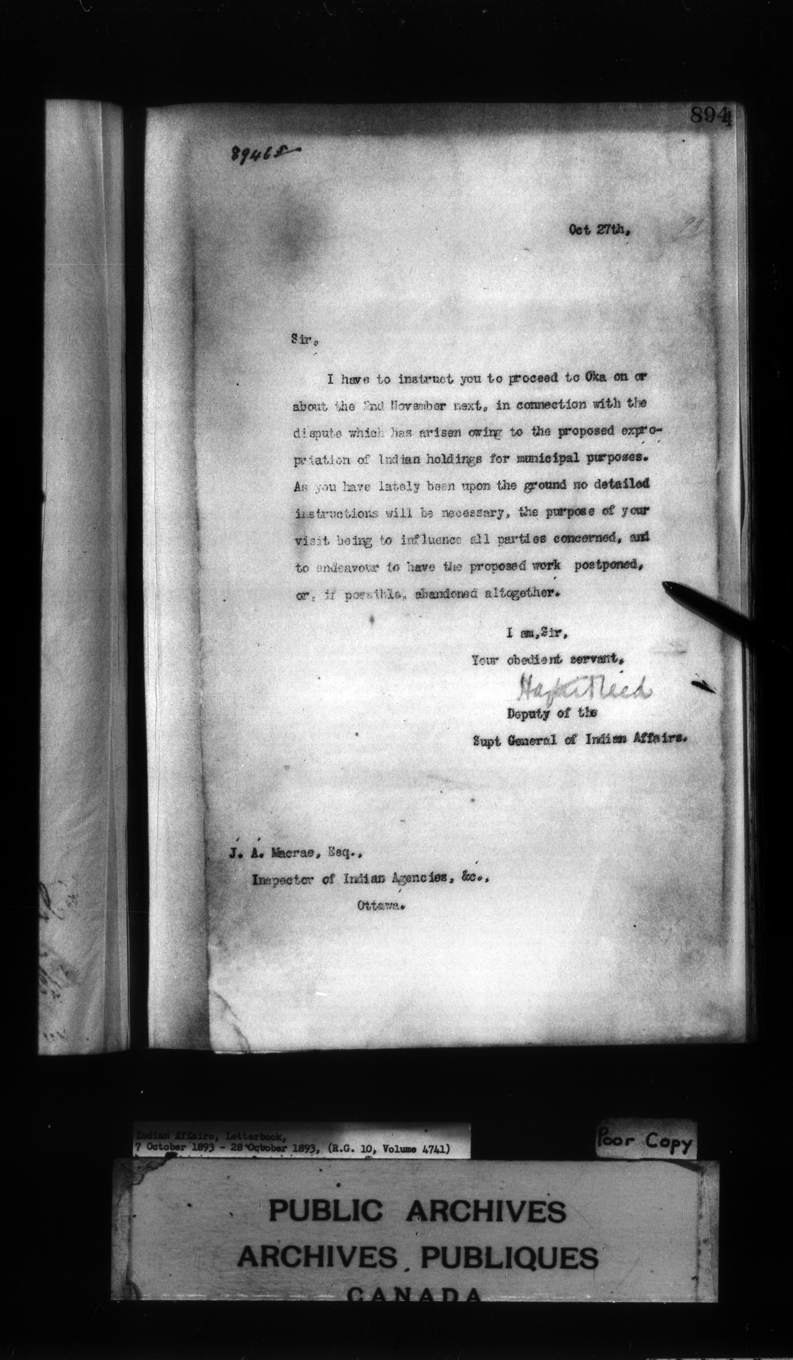 Indian Affairs, Letterbook, 7 October 1893 - 28 October 1893