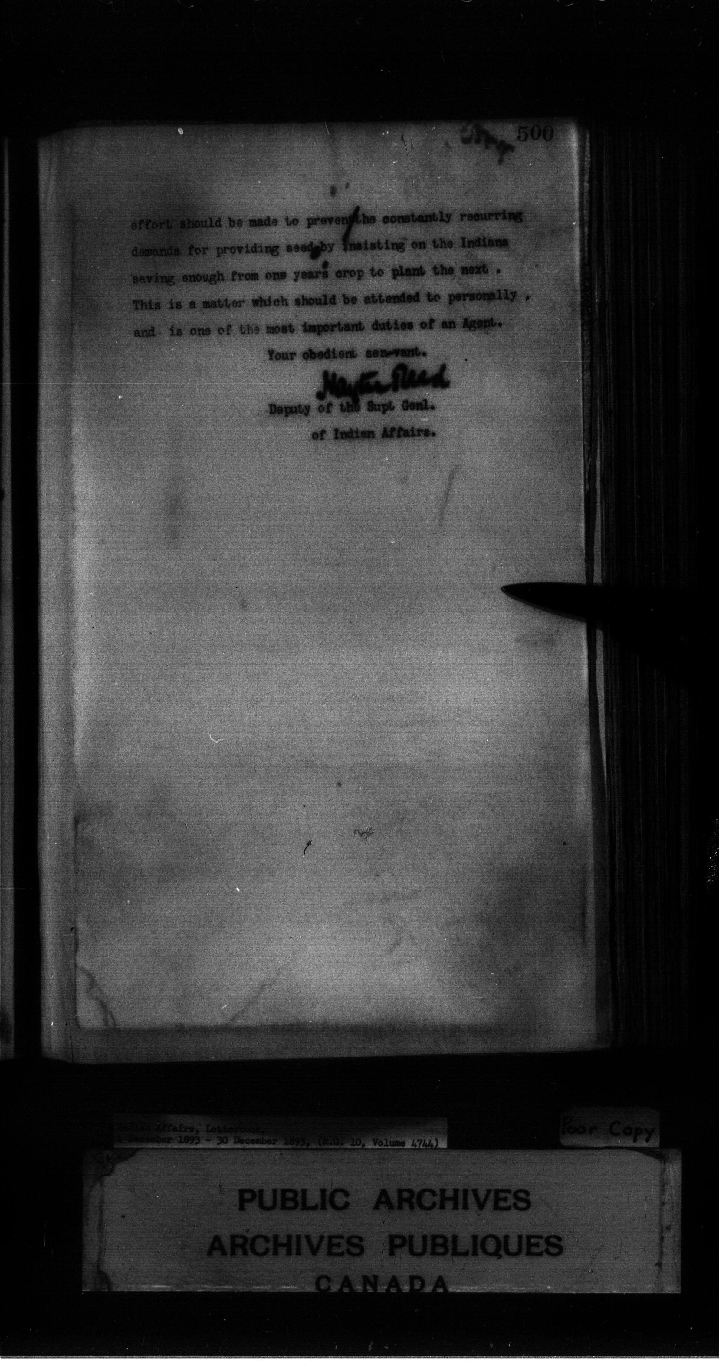 Indian Affairs, Letterbook, 4 December 1893 - 30 December 1893