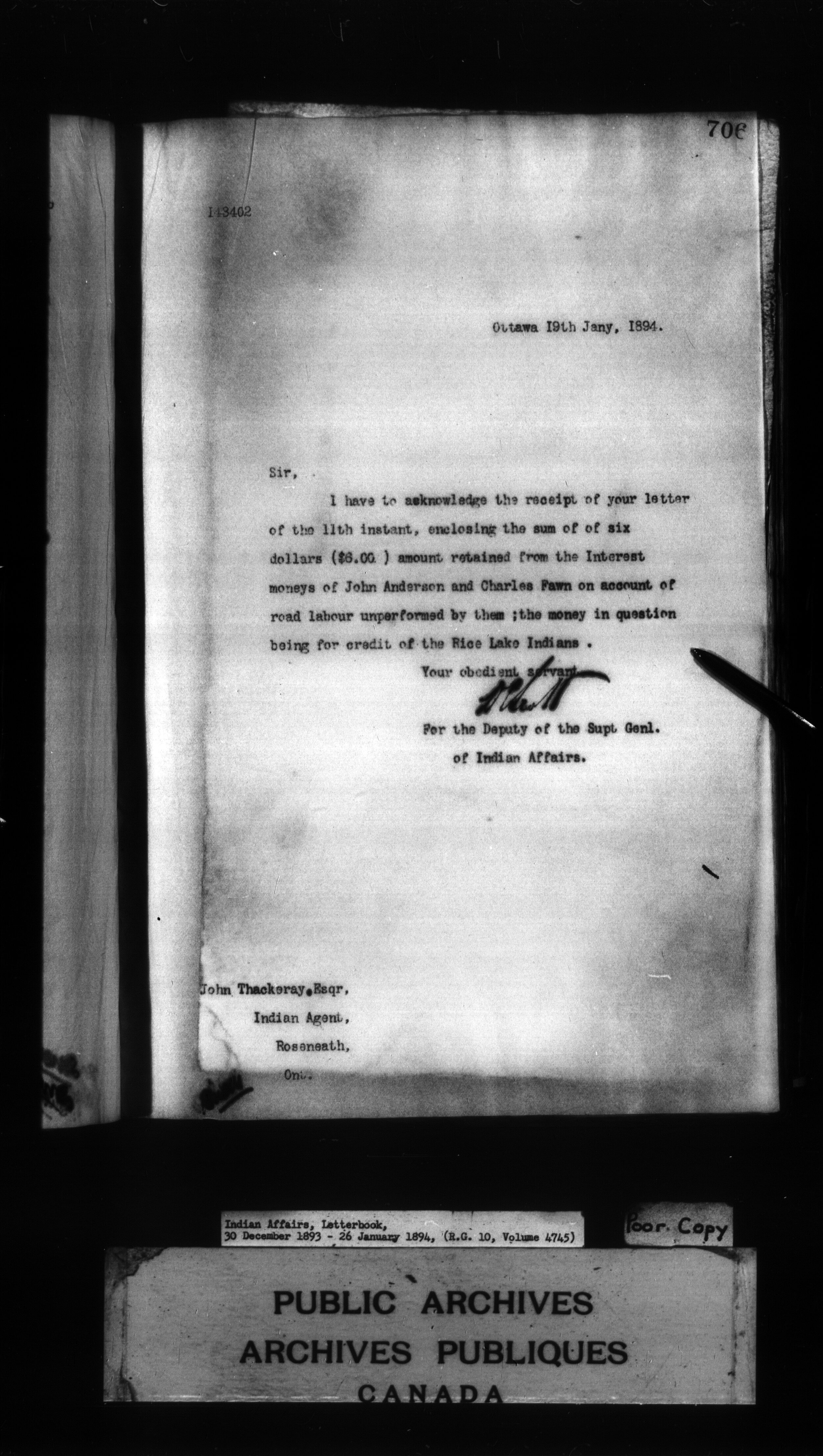 Indian Affairs, Letterbook, 30 December 1893 - 26 January 1894