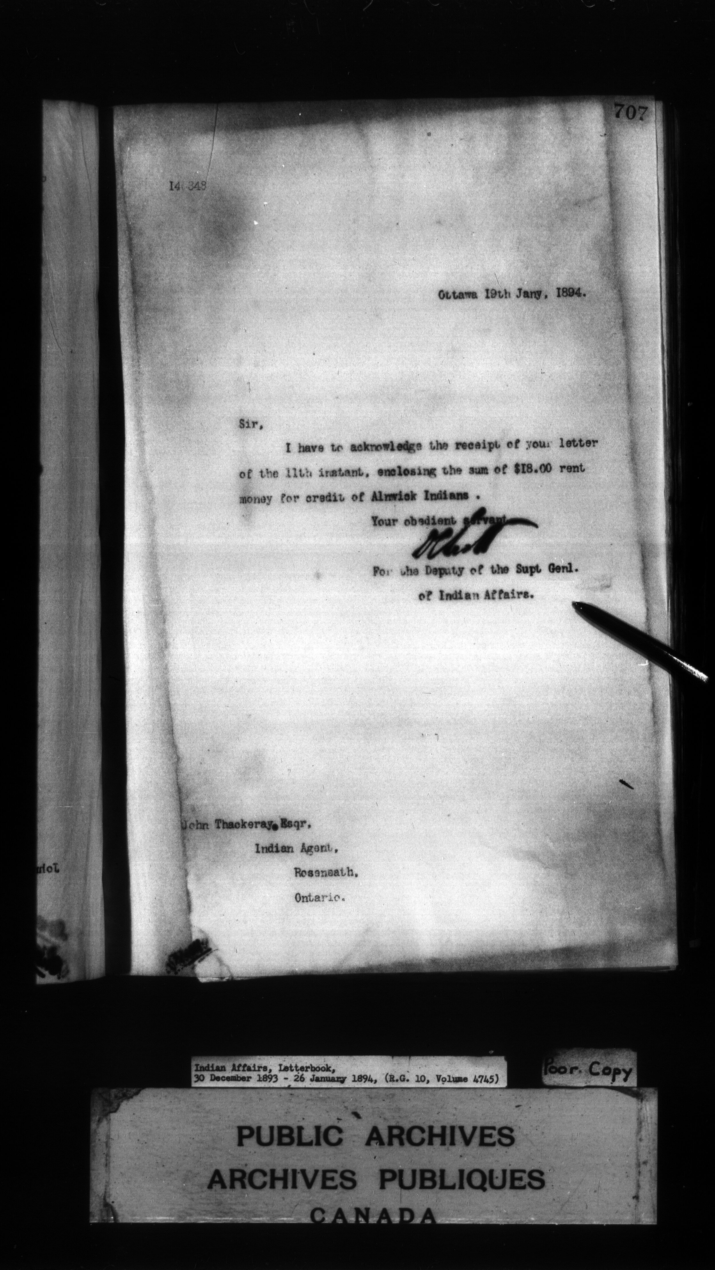 Indian Affairs, Letterbook, 30 December 1893 - 26 January 1894
