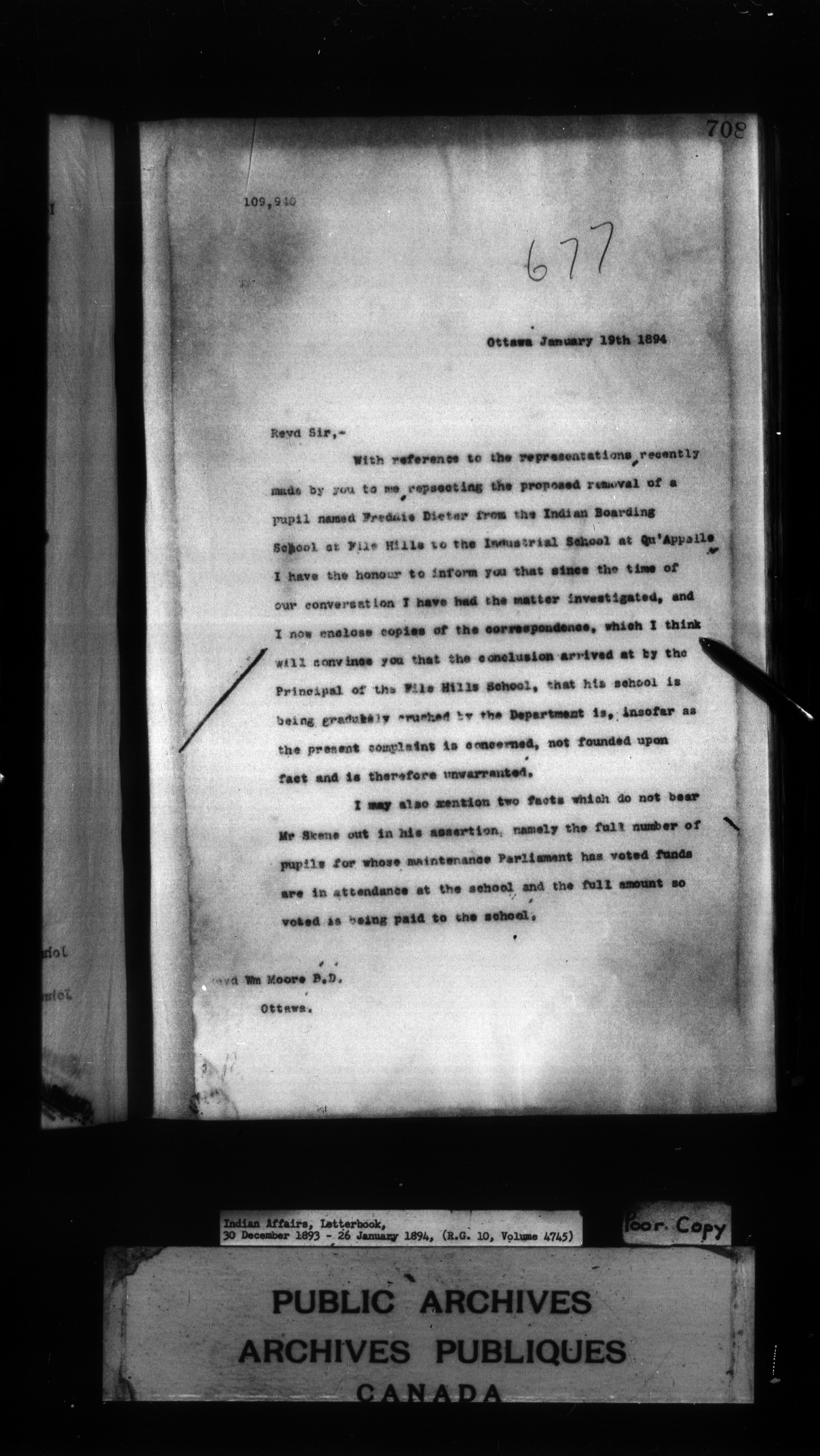 Indian Affairs, Letterbook, 4 December 1893 - 30 December 1893