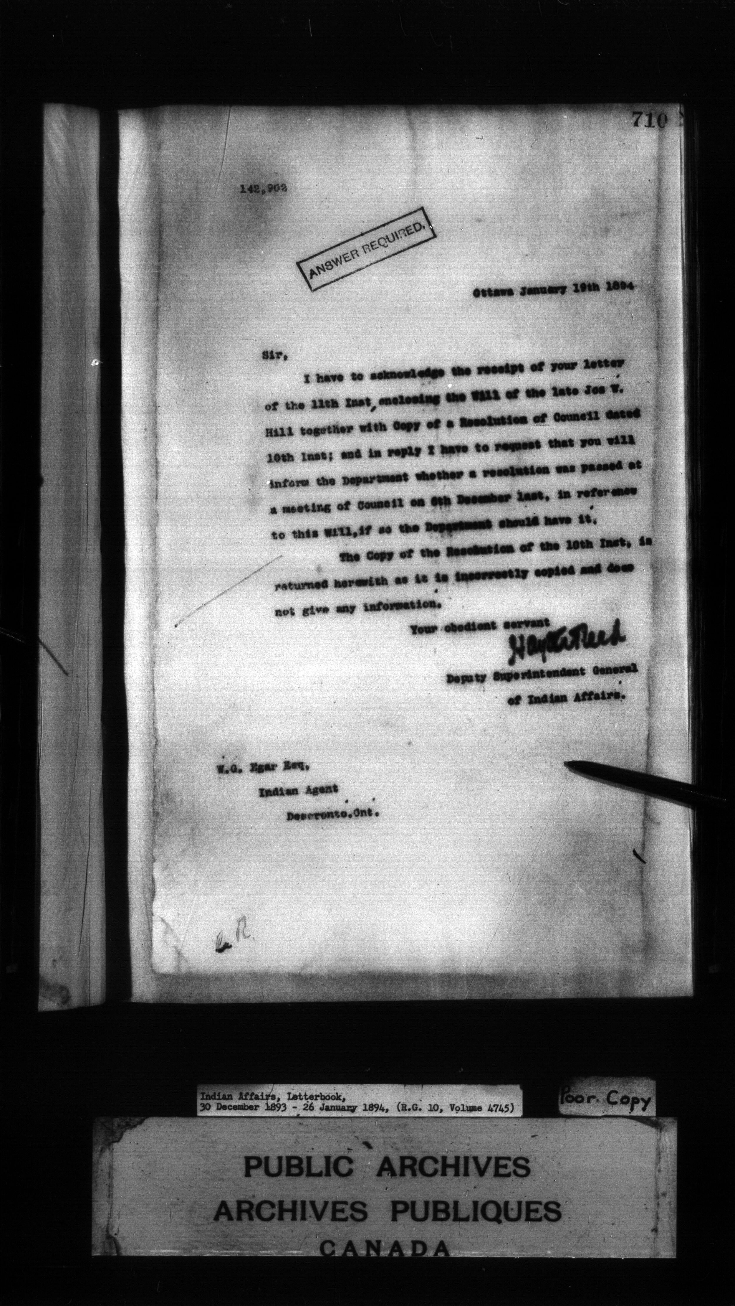 Indian Affairs, Letterbook, 30 December 1893 - 26 January 1894