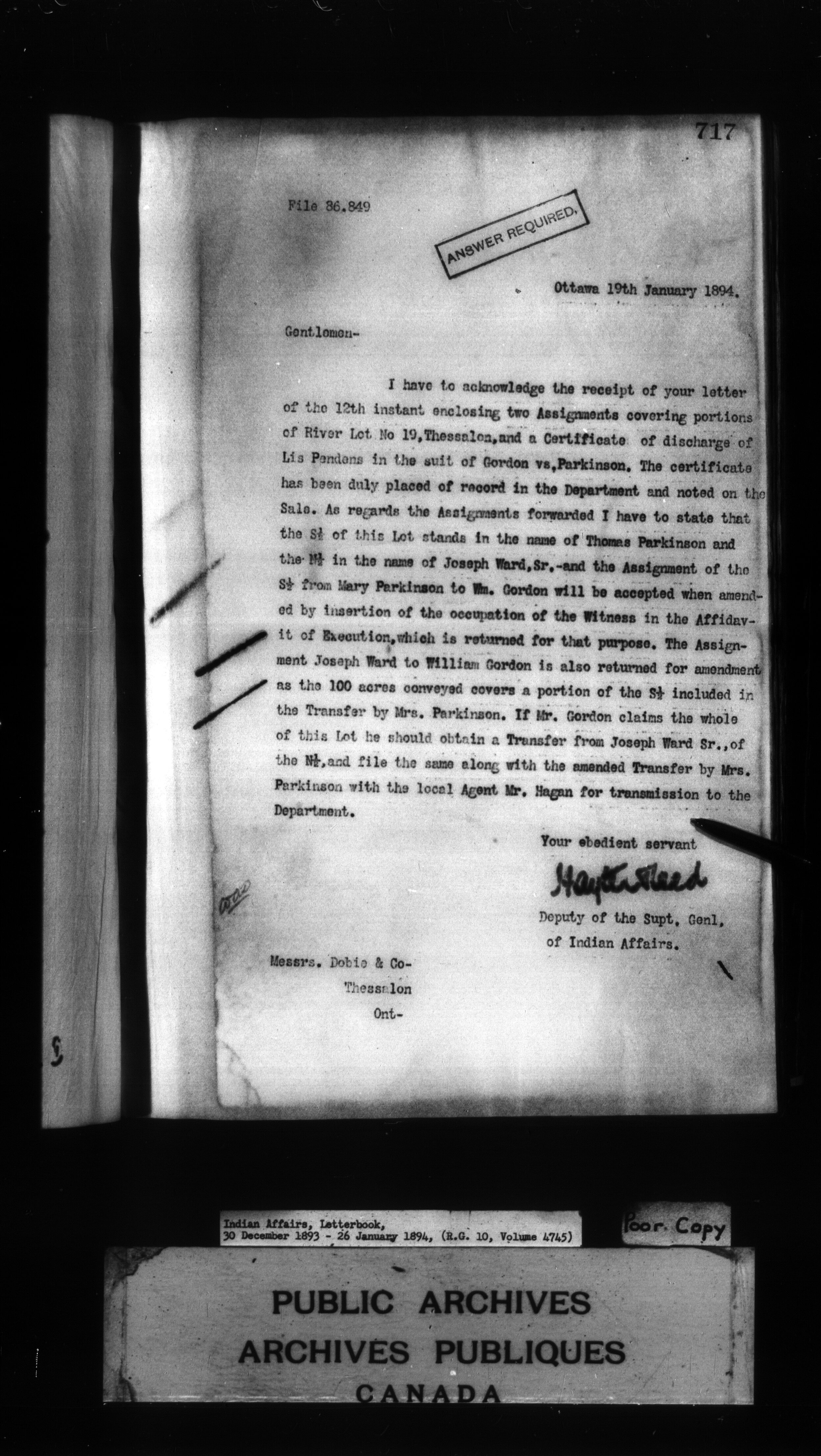 Indian Affairs, Letterbook, 30 December 1893 - 26 January 1894