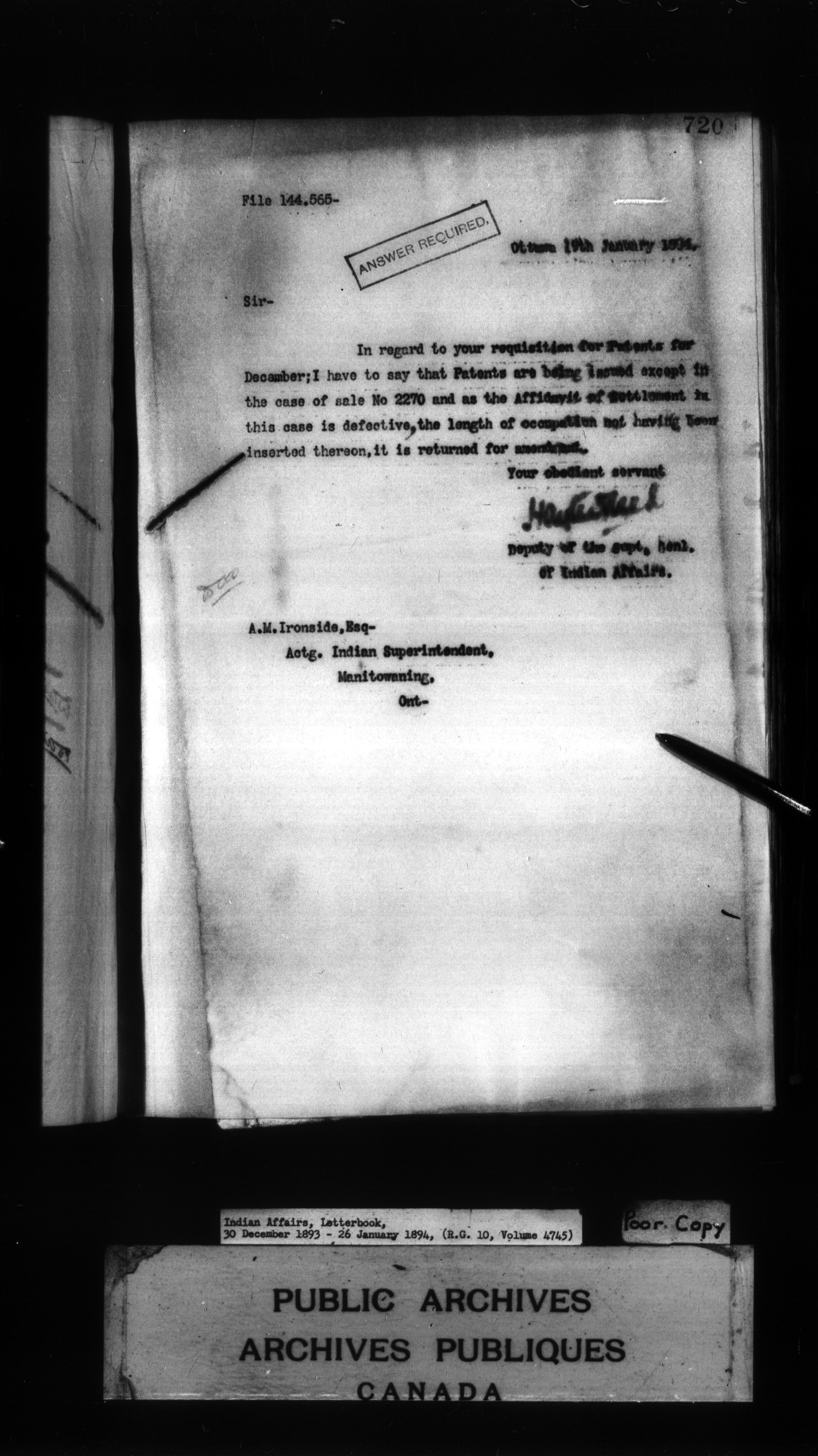 Indian Affairs, Letterbook, 30 December 1893 - 26 January 1894