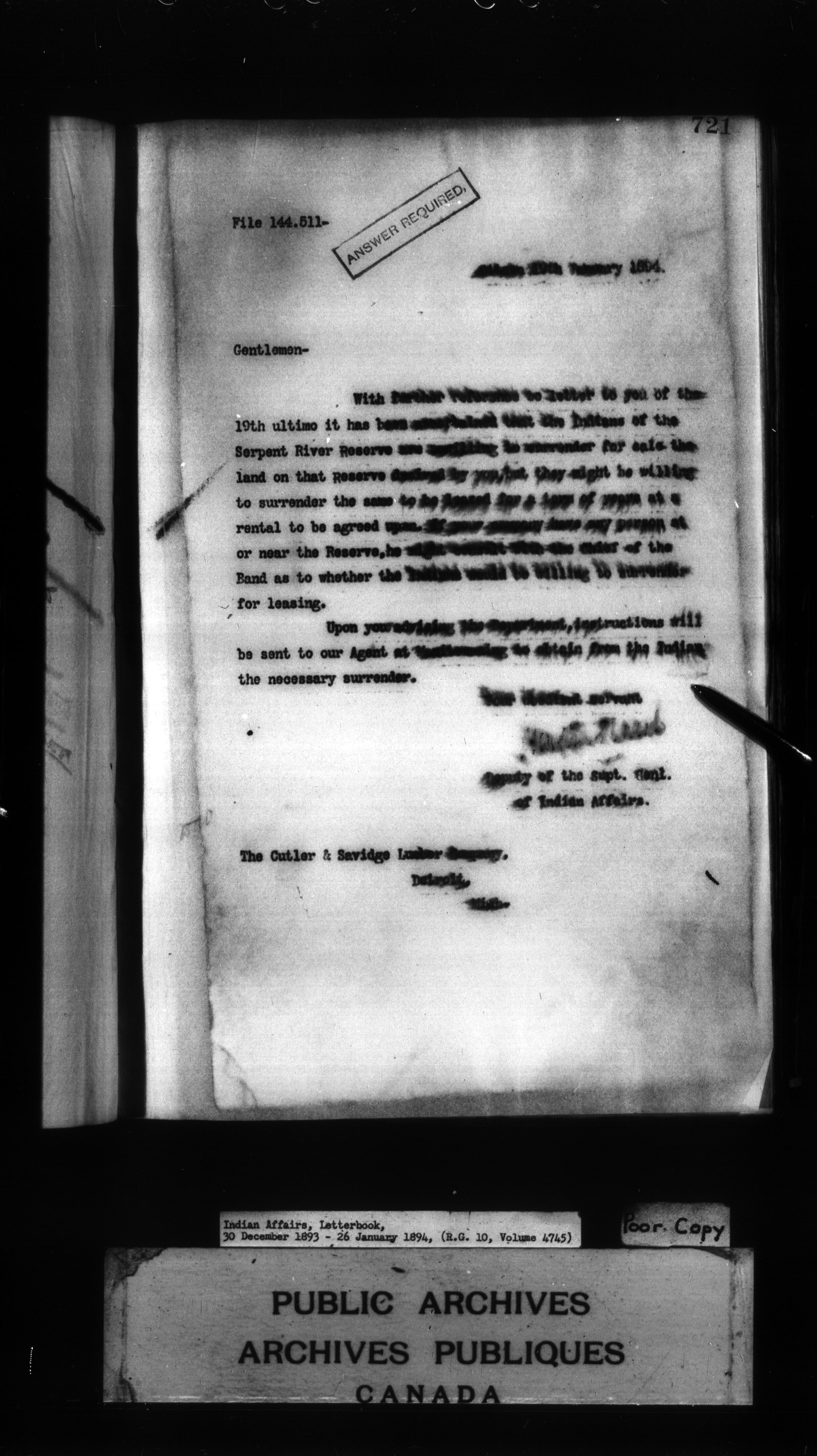 Indian Affairs, Letterbook, 30 December 1893 - 26 January 1894
