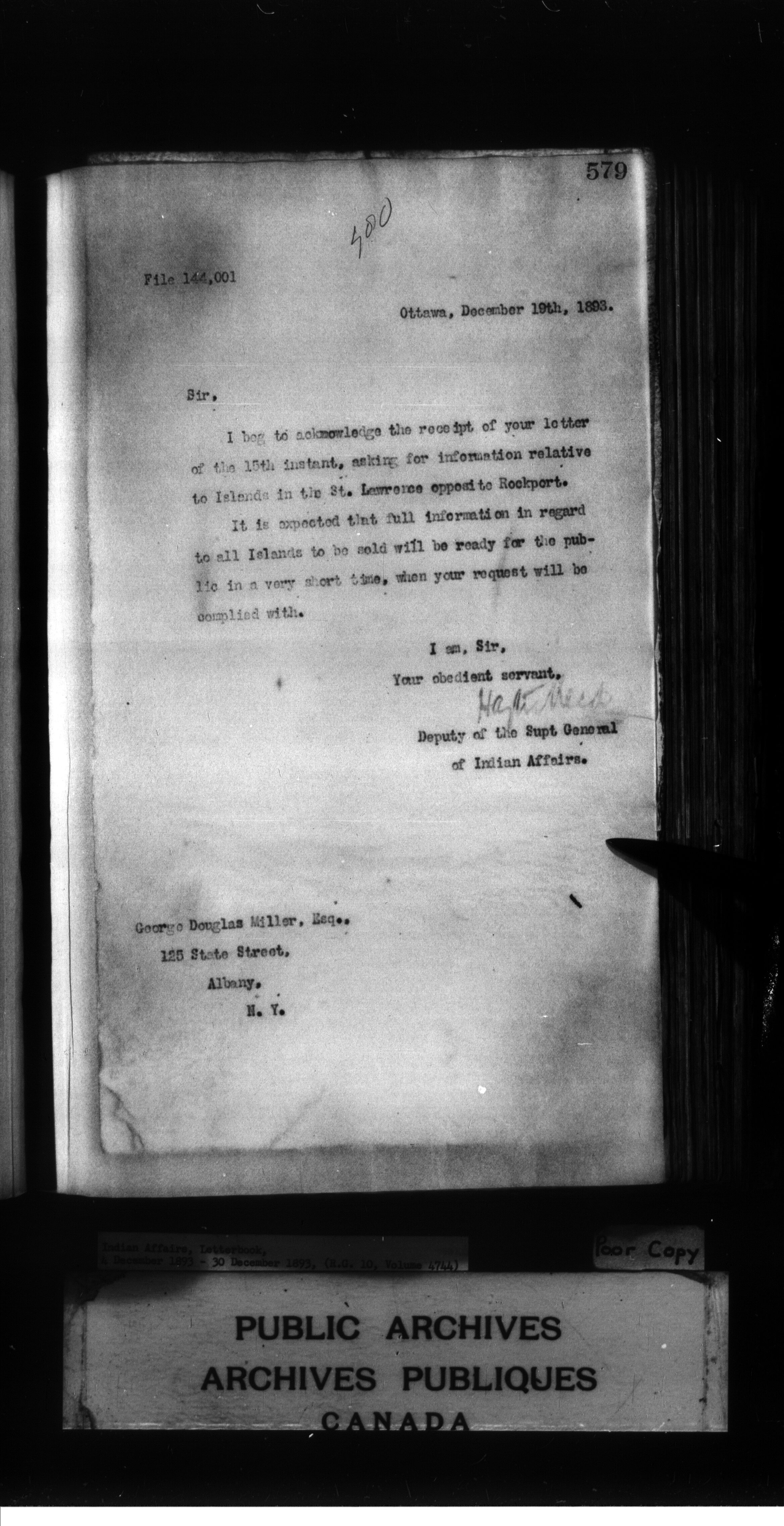 Indian Affairs, Letterbook, 4 December 1893 - 30 December 1893