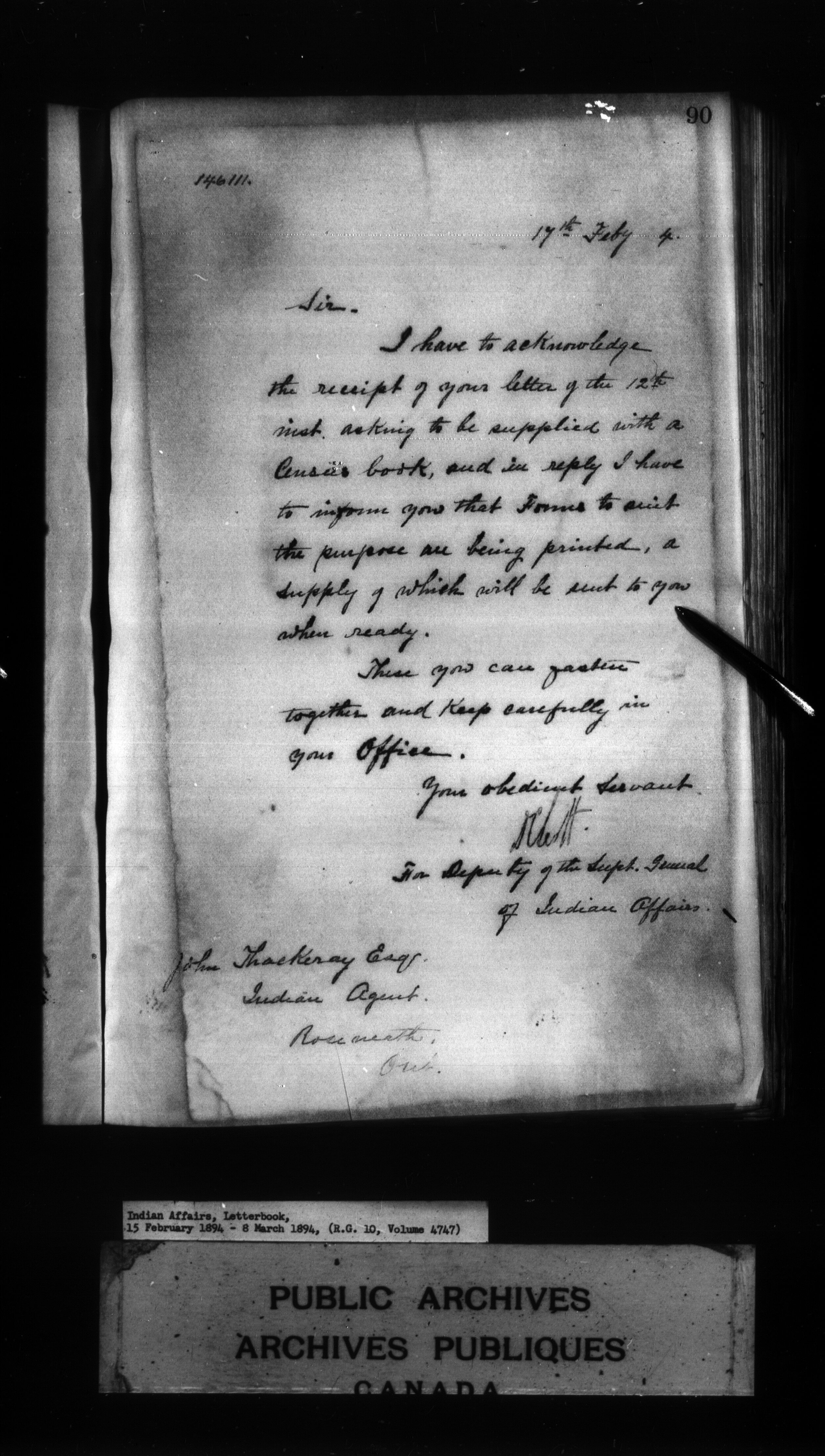 Indian Affairs, Letterbook, 15 February 1894 - 8 March 1894