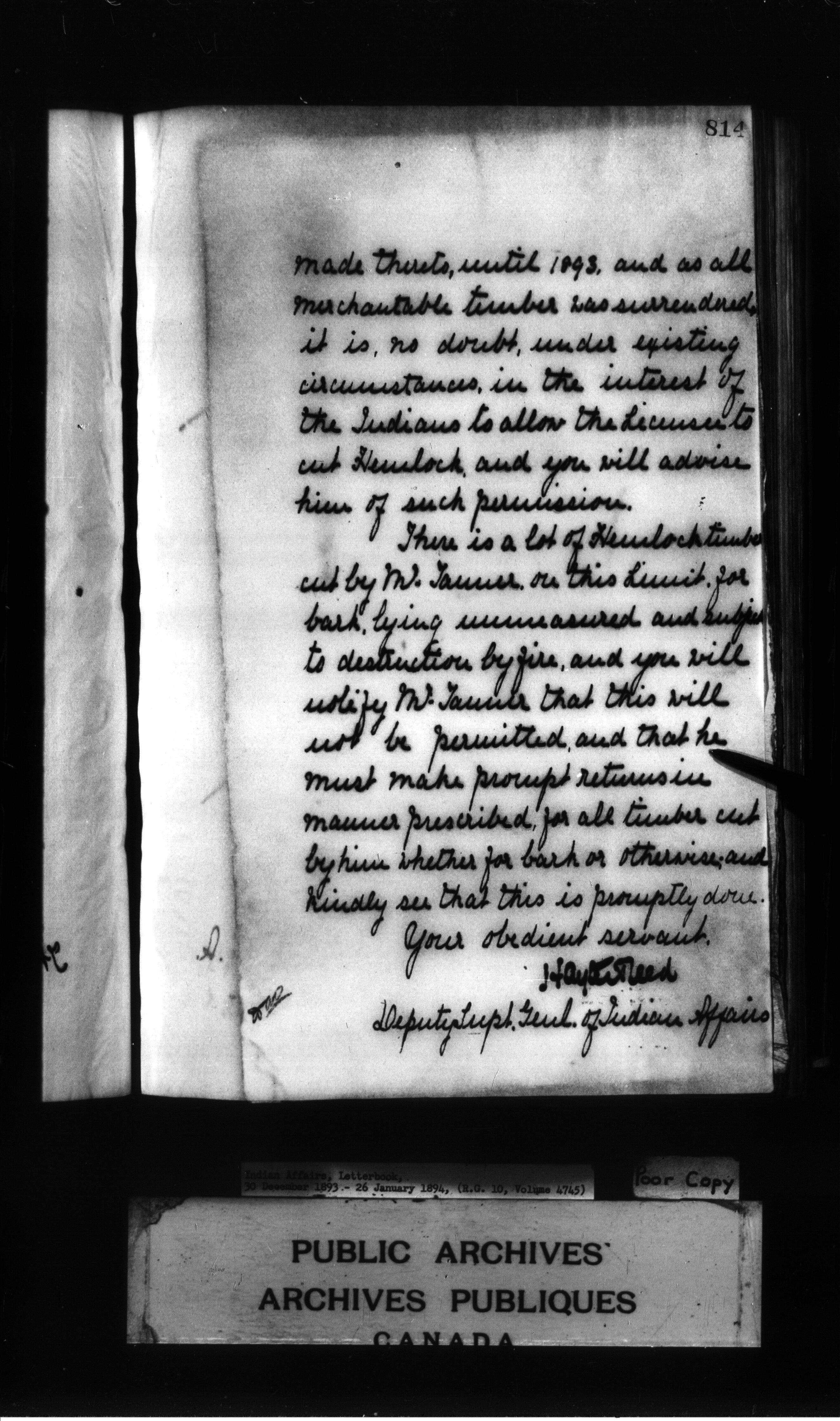 Indian Affairs, Letterbook, 30 December 1893 - 26 January 1894