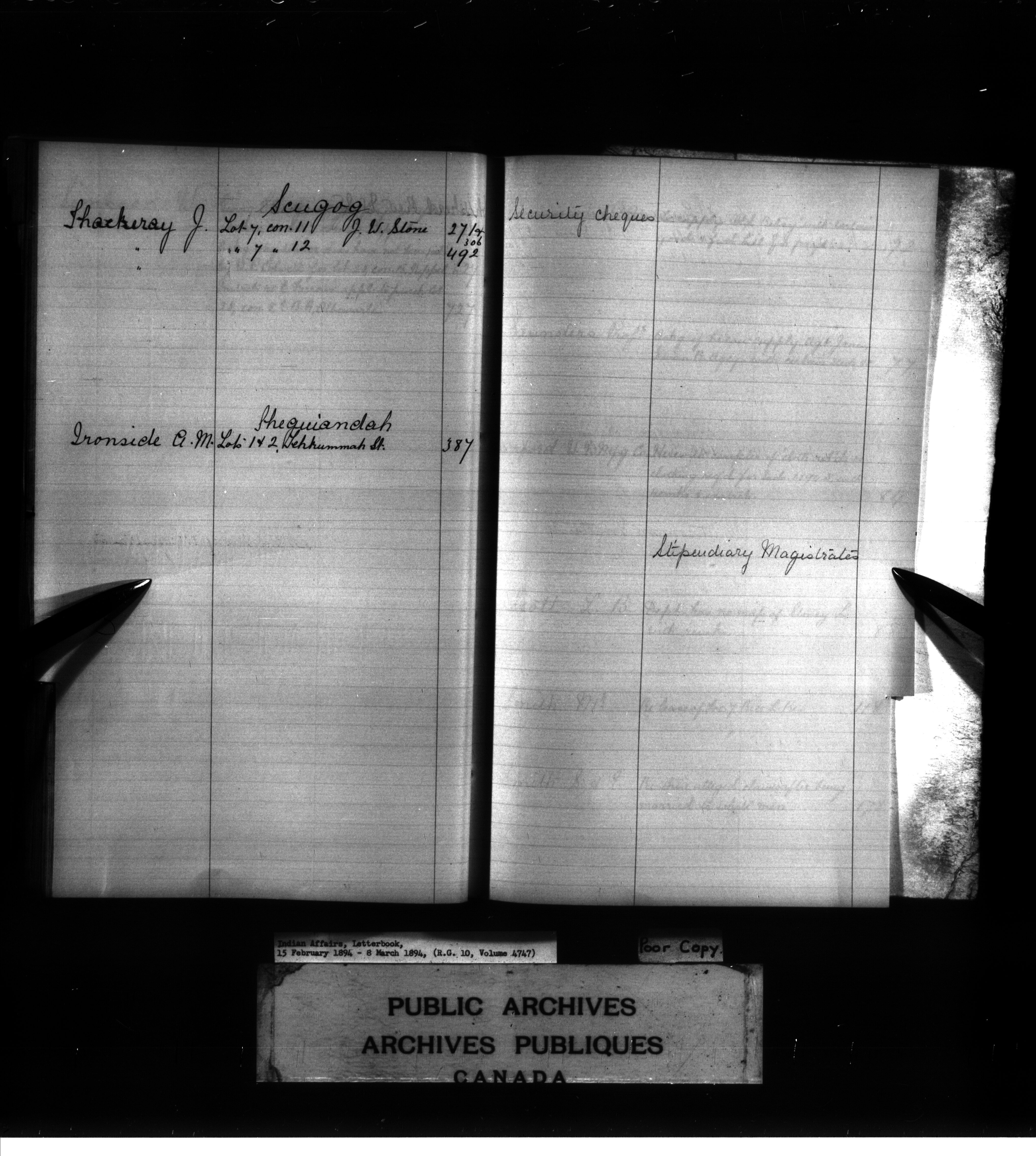 Indian Affairs, Letterbook, 15 February 1894 - 8 March 1894