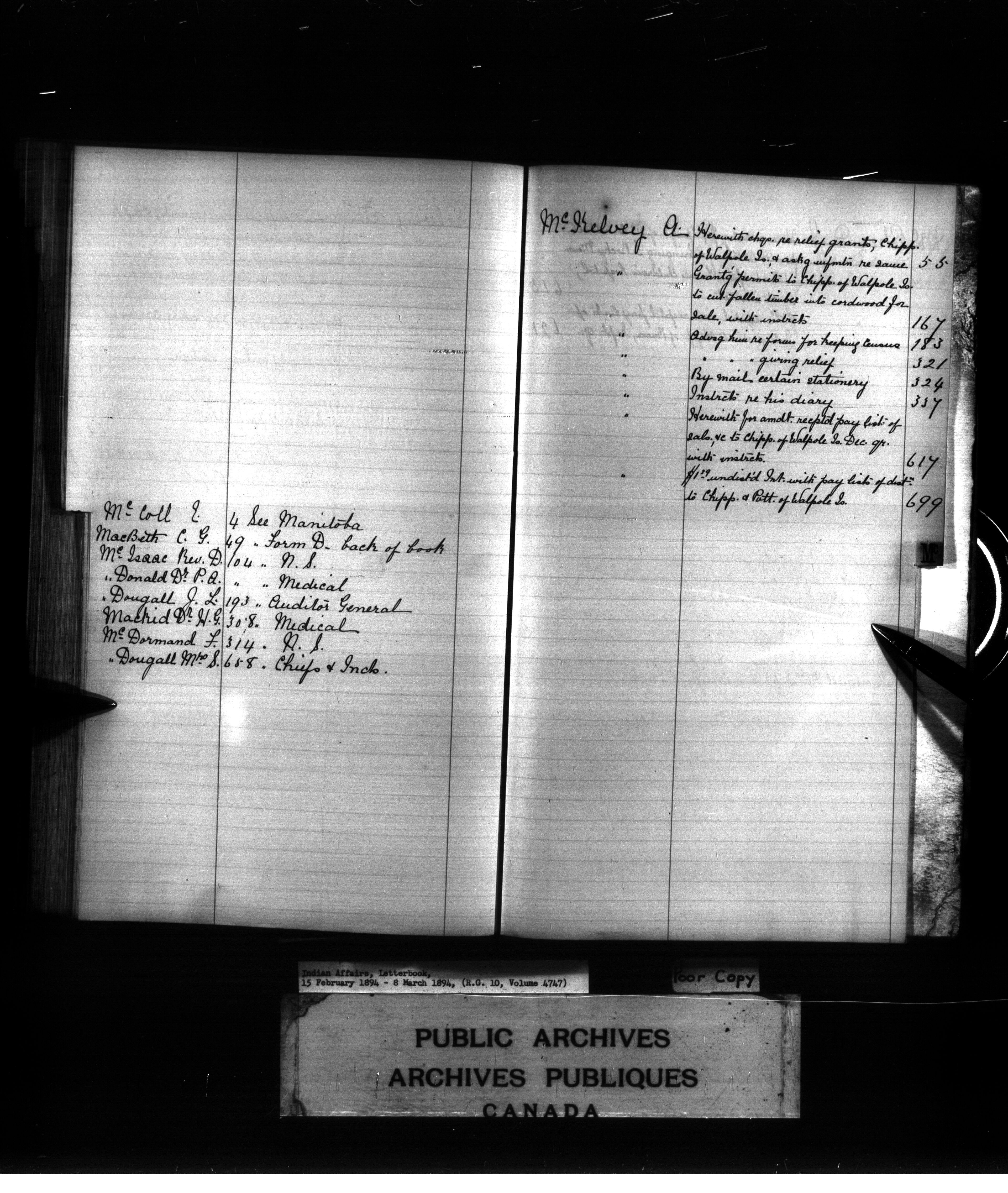 Indian Affairs, Letterbook, 15 February 1894 - 8 March 1894