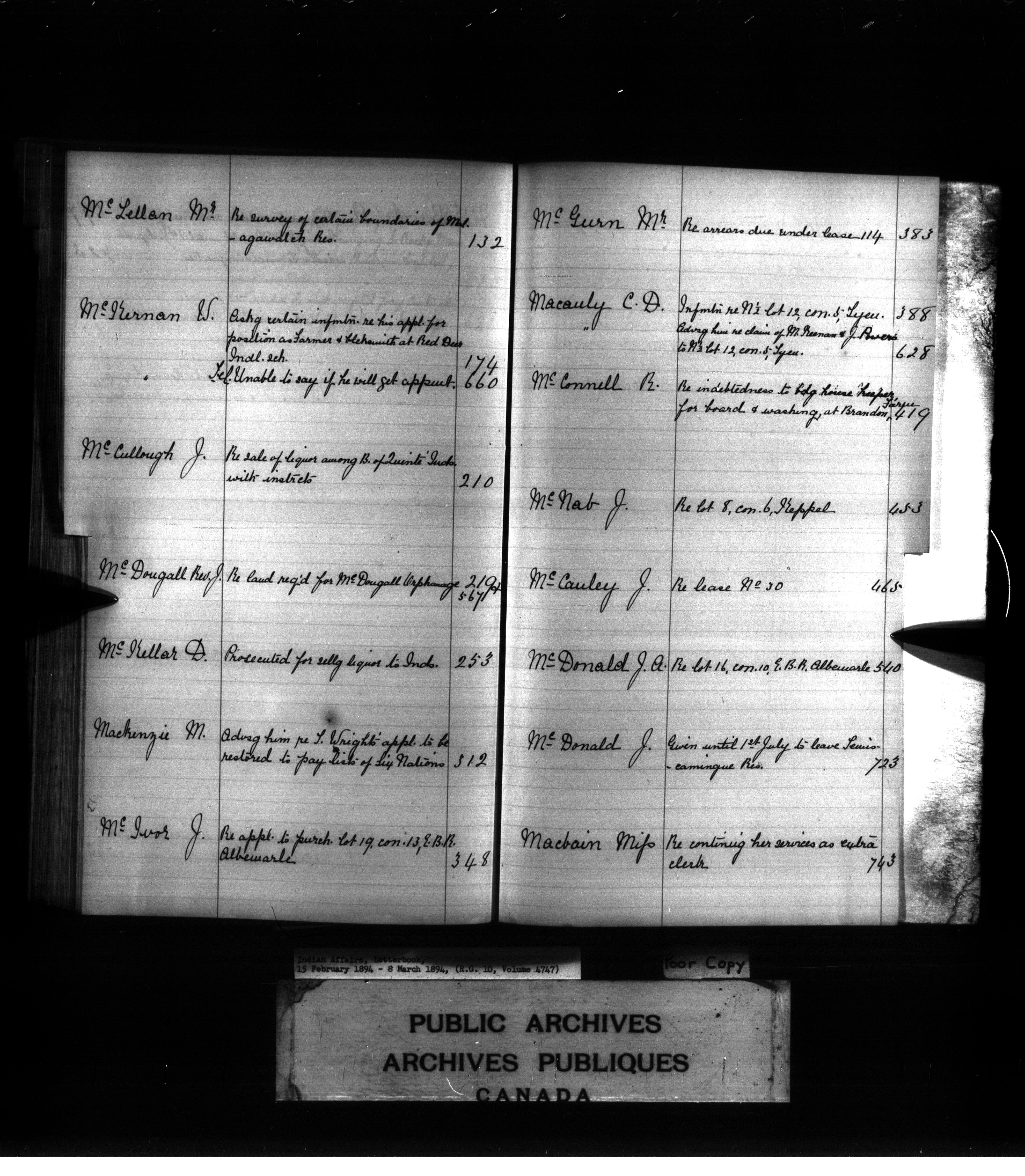 Indian Affairs, Letterbook, 15 February 1894 - 8 March 1894