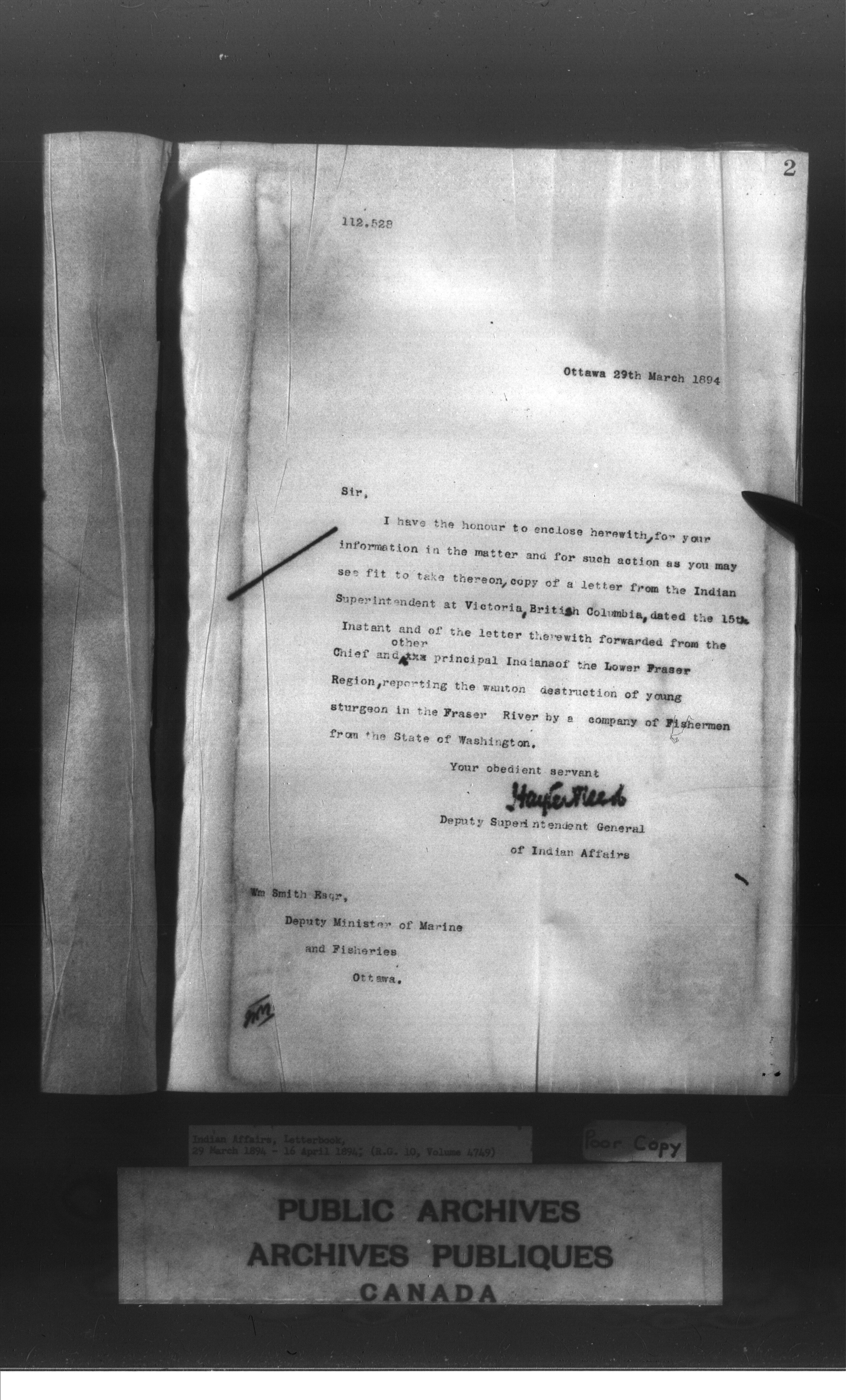 Indian Affairs, Letterbook, 29 March 1894 - 16 April 1894