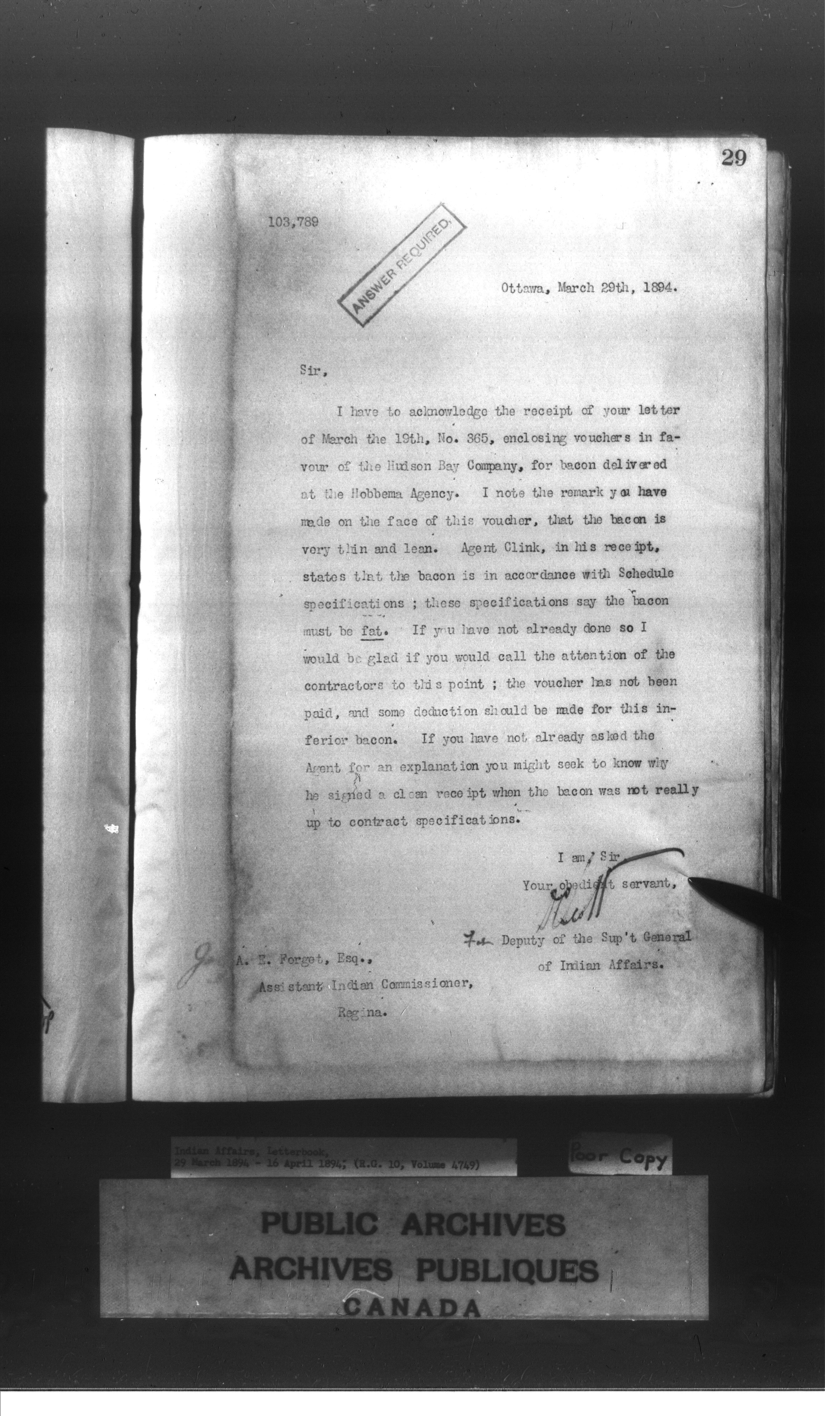 Indian Affairs, Letterbook, 29 March 1894 - 16 April 1894