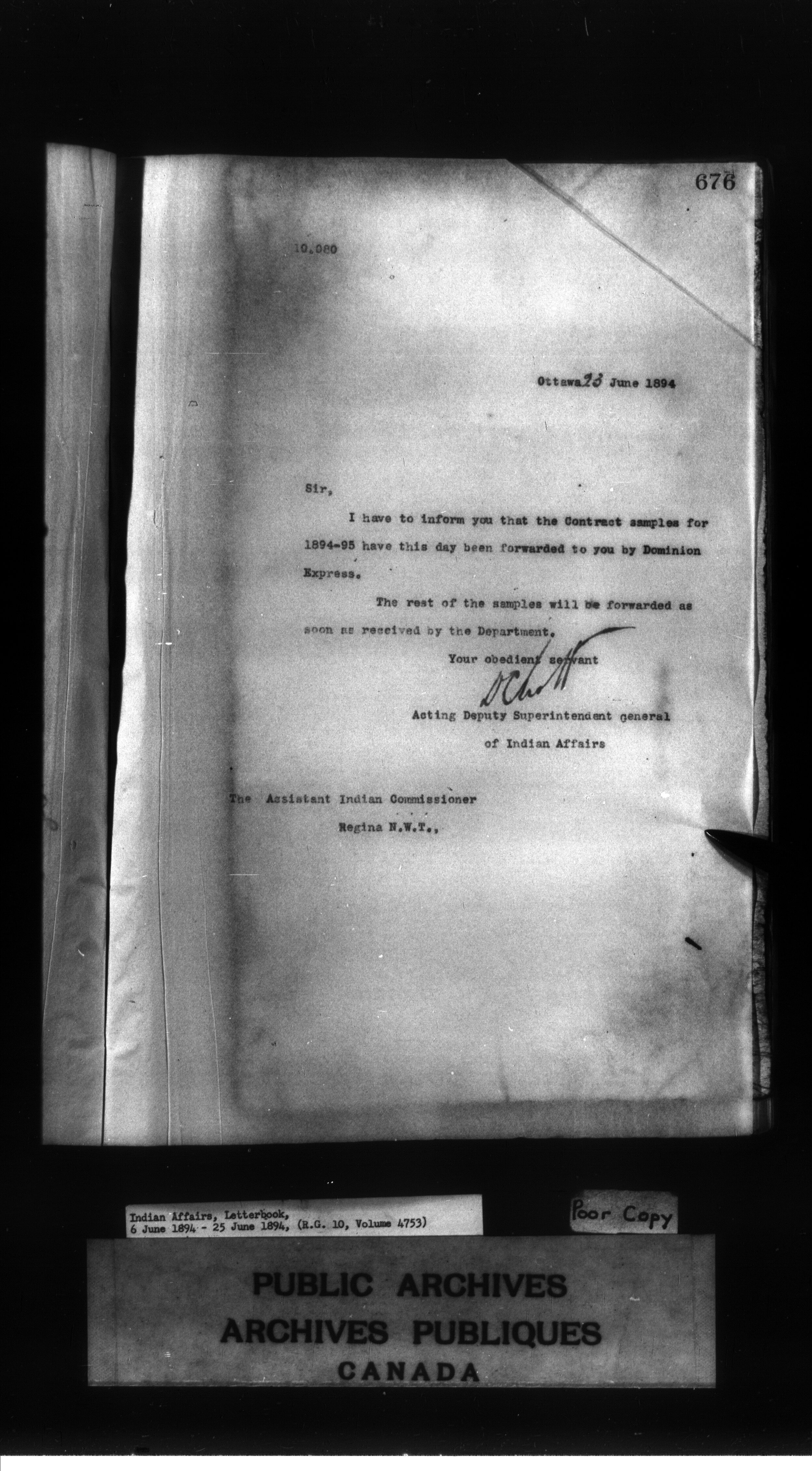 Indian Affairs, Letterbook, 6 June 1894 - 25 June 1894