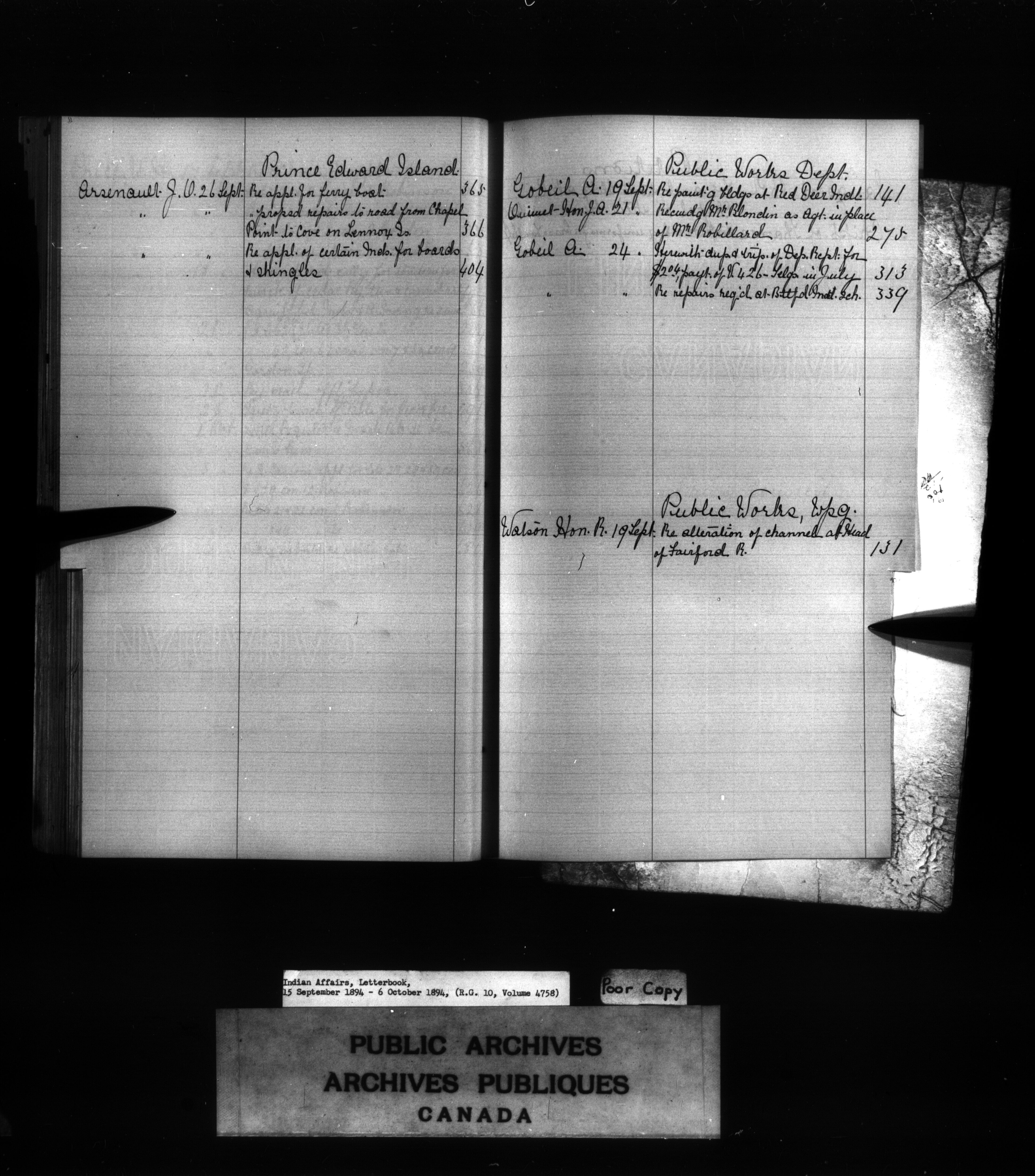 Indian Affairs, Letterbook, 15 September 1894 - 6 October 1894
