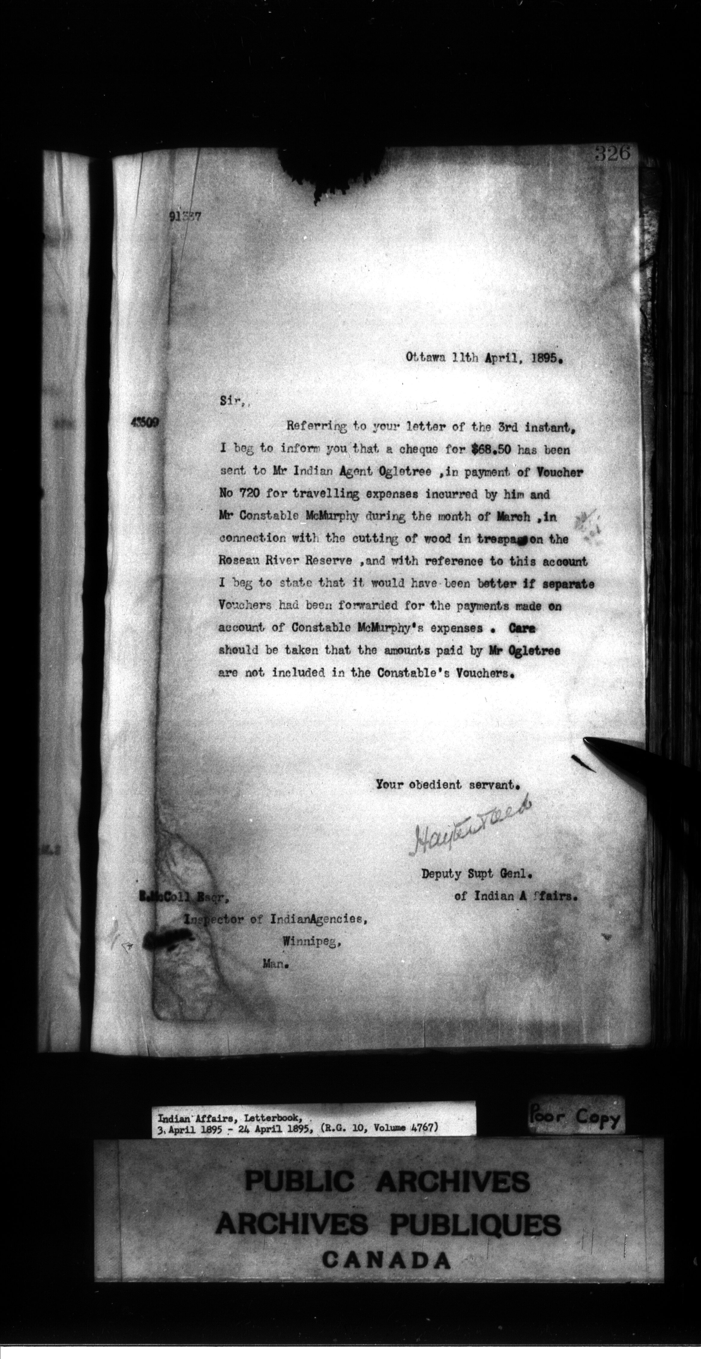 Indian Affairs, Letterbook, 3 April 1895 - 24 April 1895
