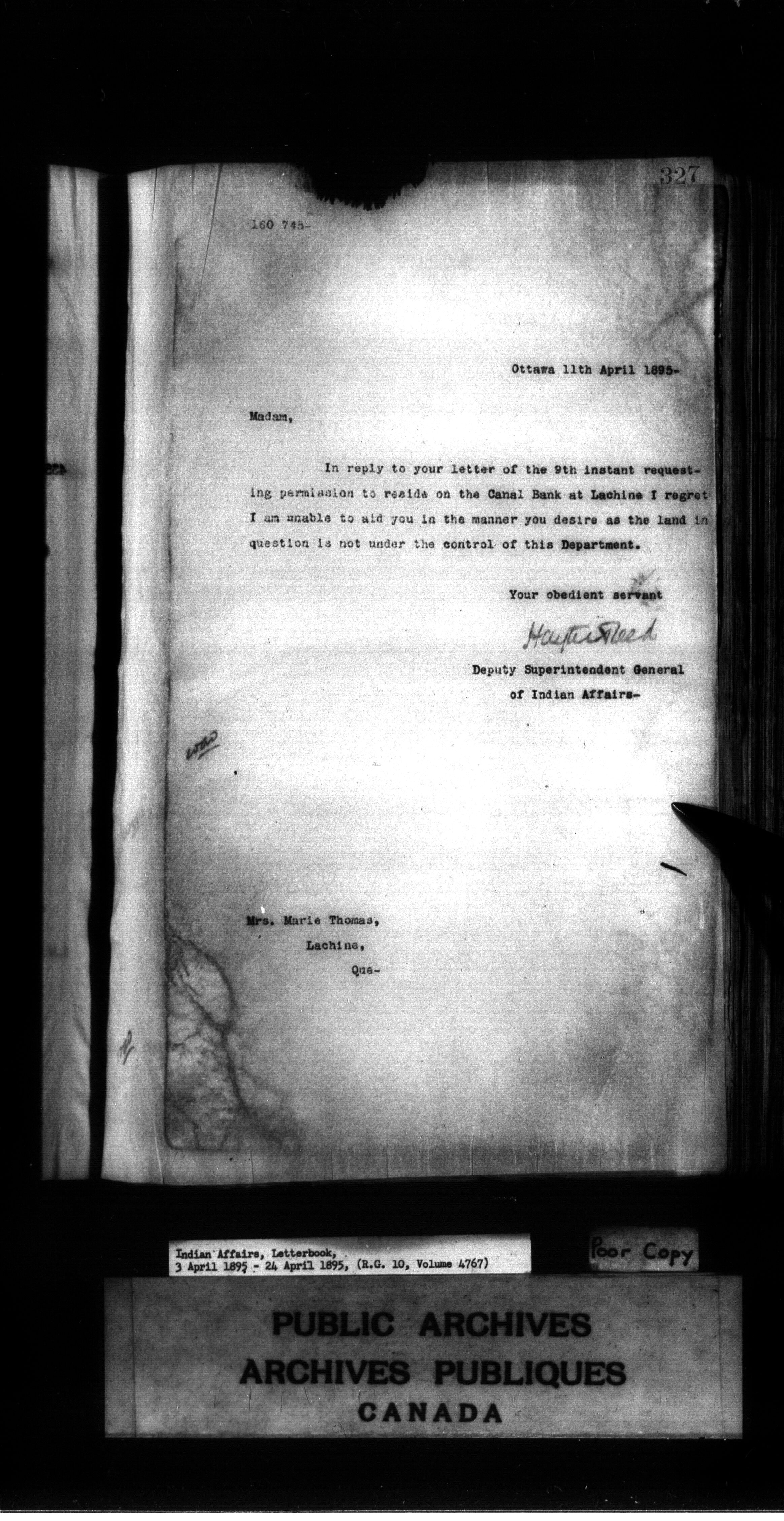 Indian Affairs, Letterbook, 3 April 1895 - 24 April 1895