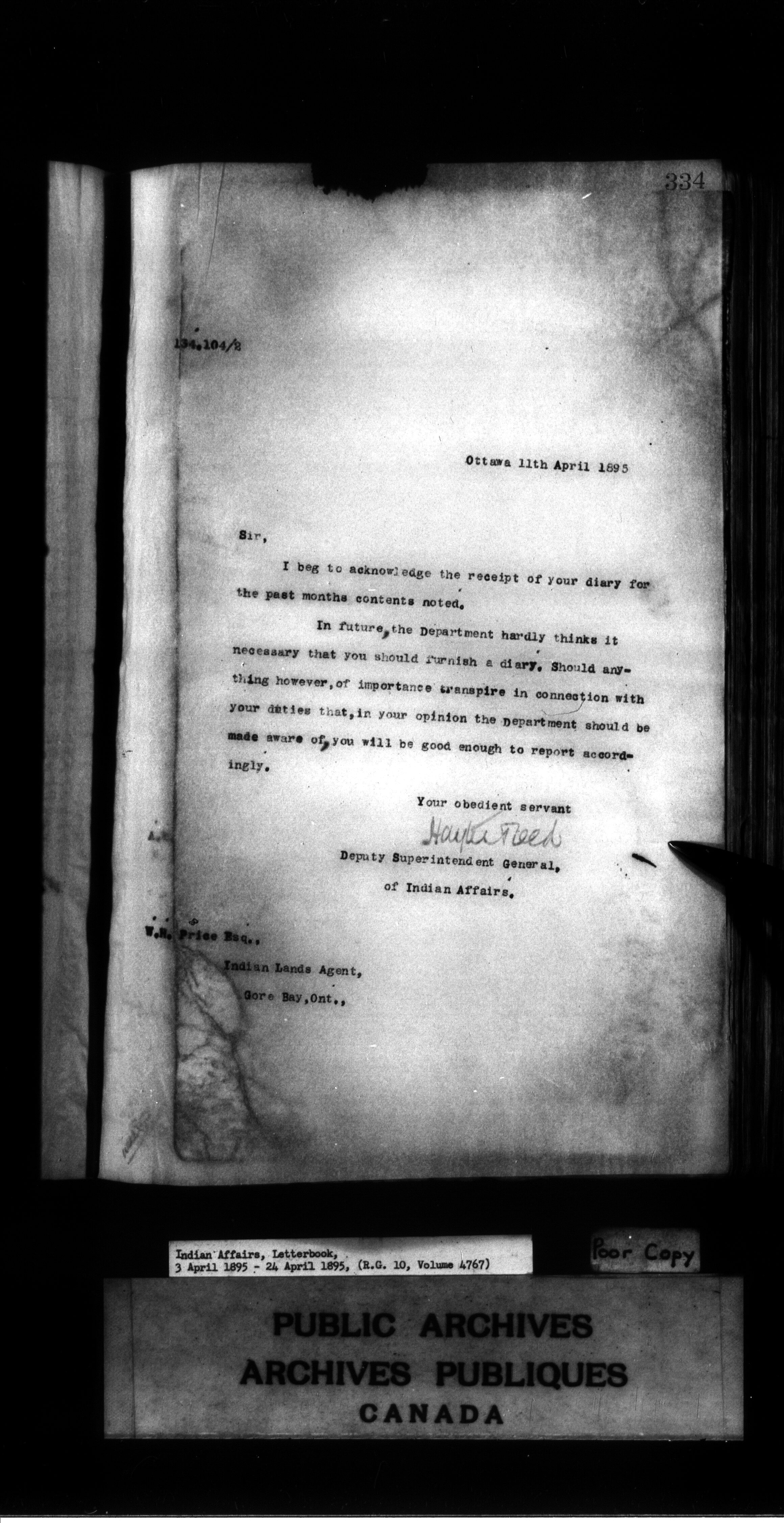 Indian Affairs, Letterbook, 3 April 1895 - 24 April 1895