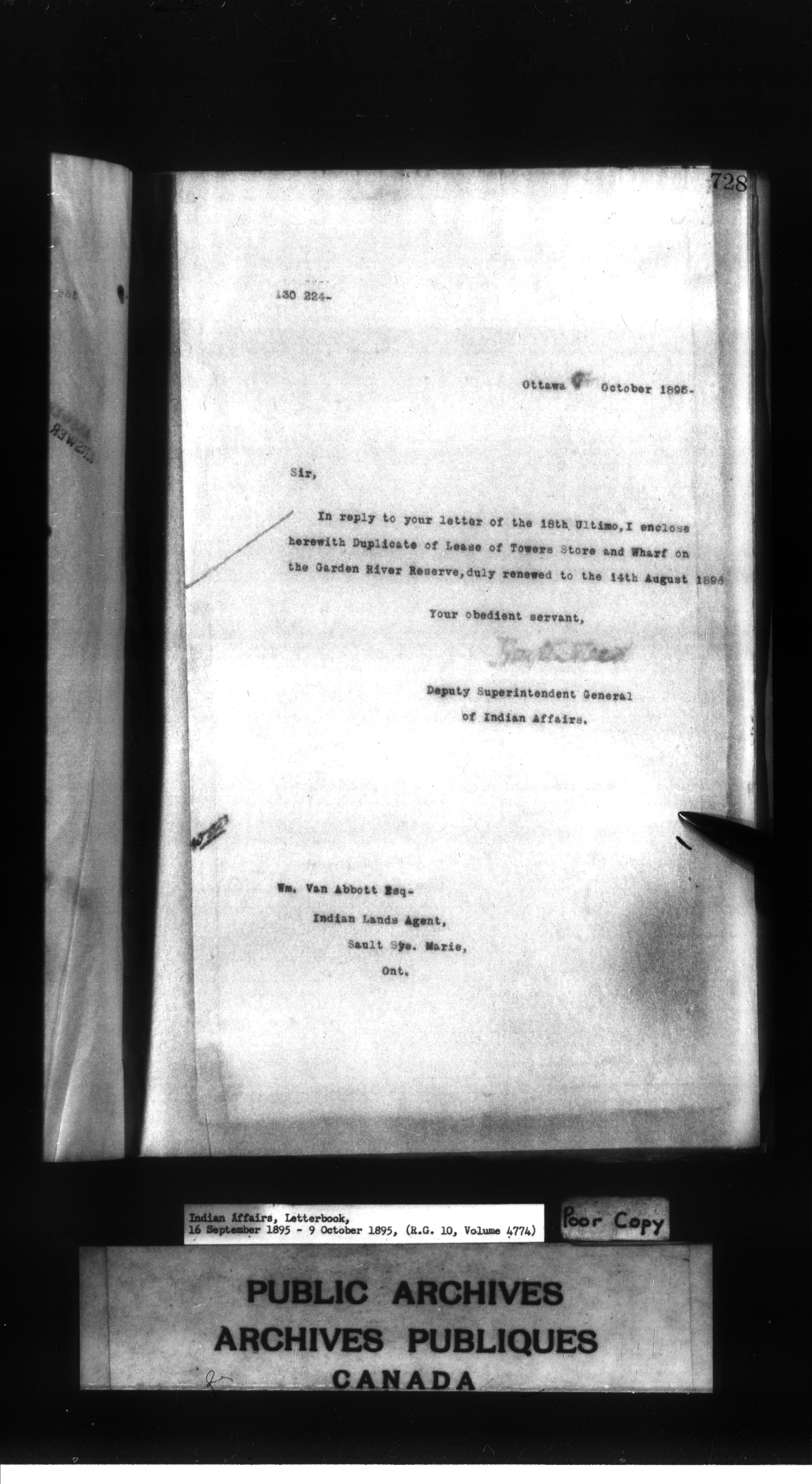 Indian Affairs, Letterbook, 9 October 1895 - 5 November 1895