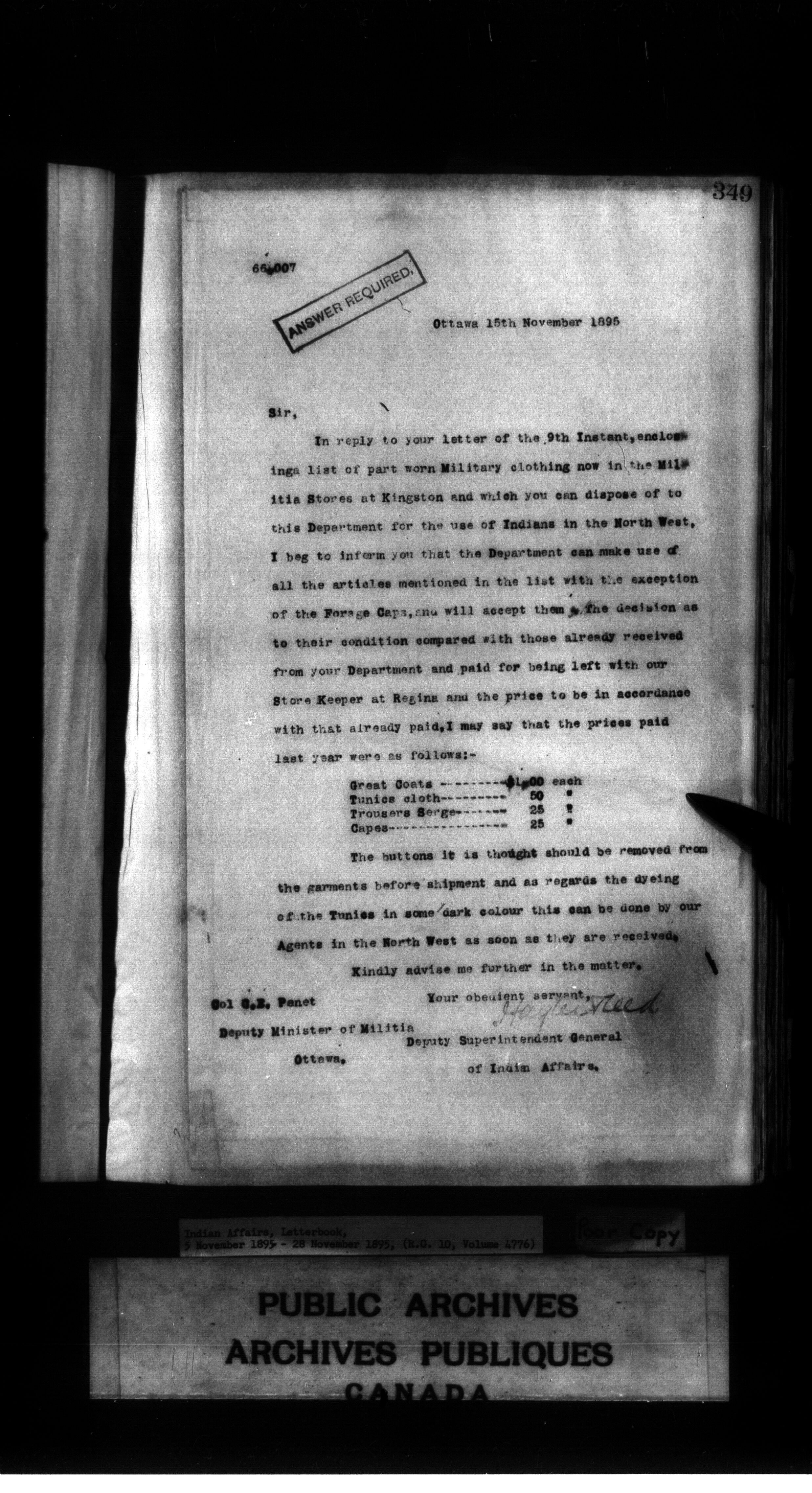 Indian Affairs, Letterbook, 5 November 1895 - 28 November 1895