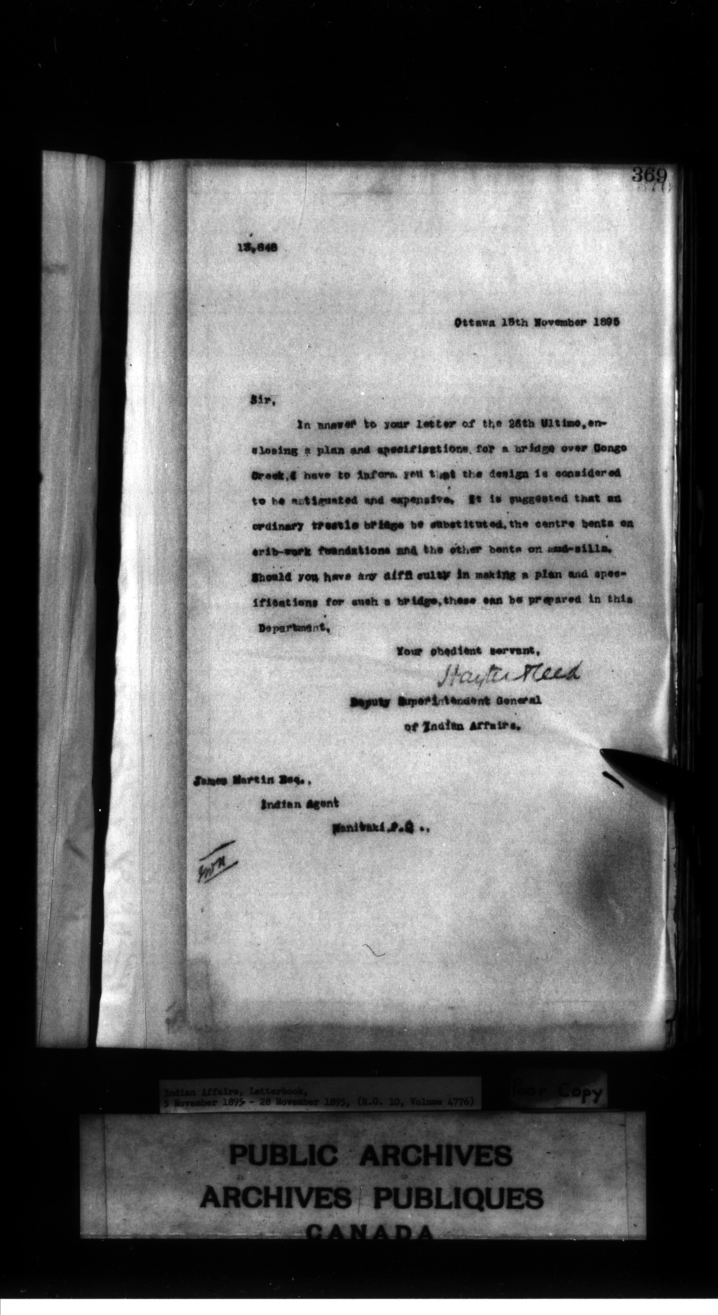 Indian Affairs, Letterbook, 5 November 1895 - 28 November 1895