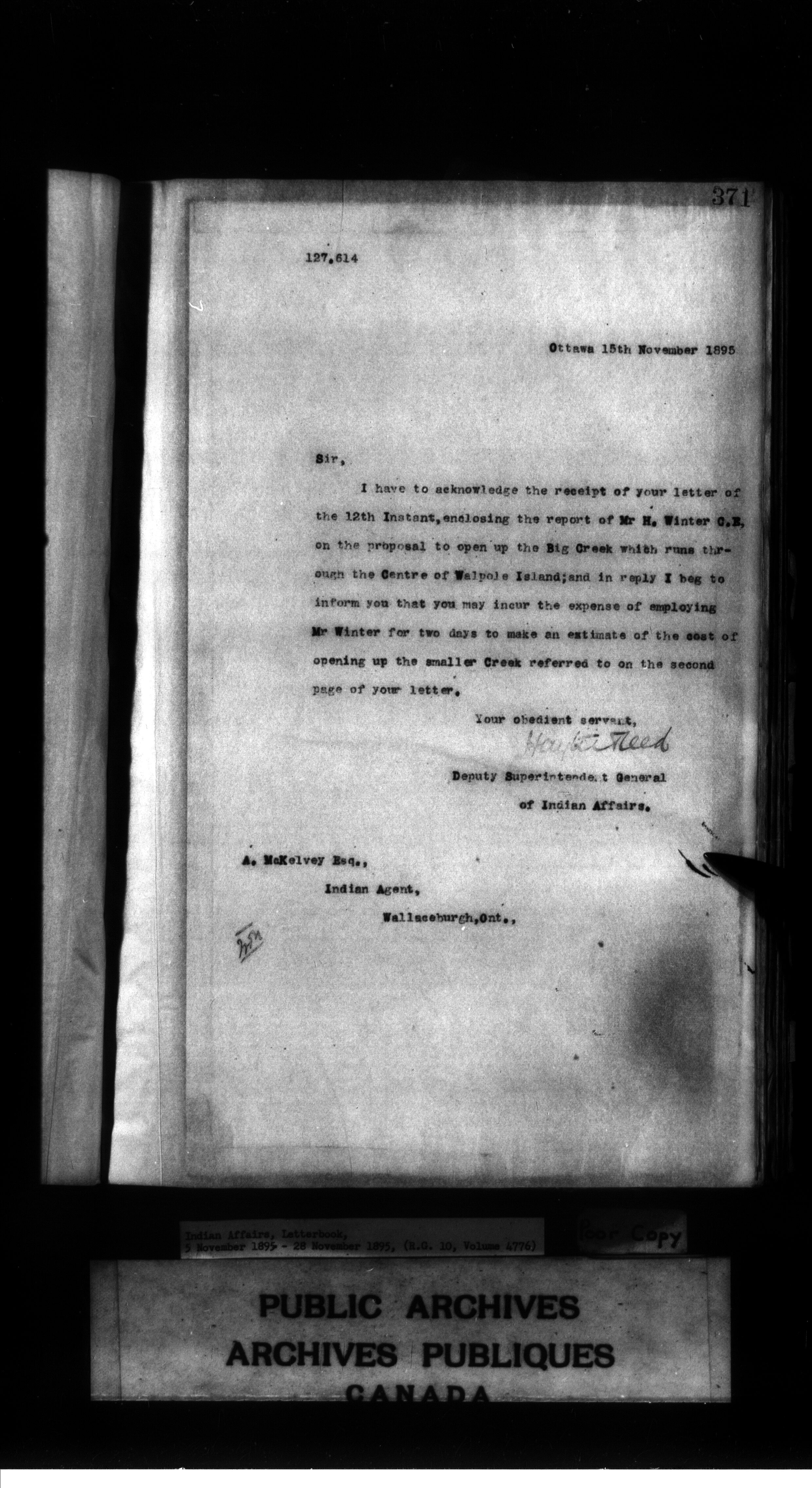Indian Affairs, Letterbook, 5 November 1895 - 28 November 1895
