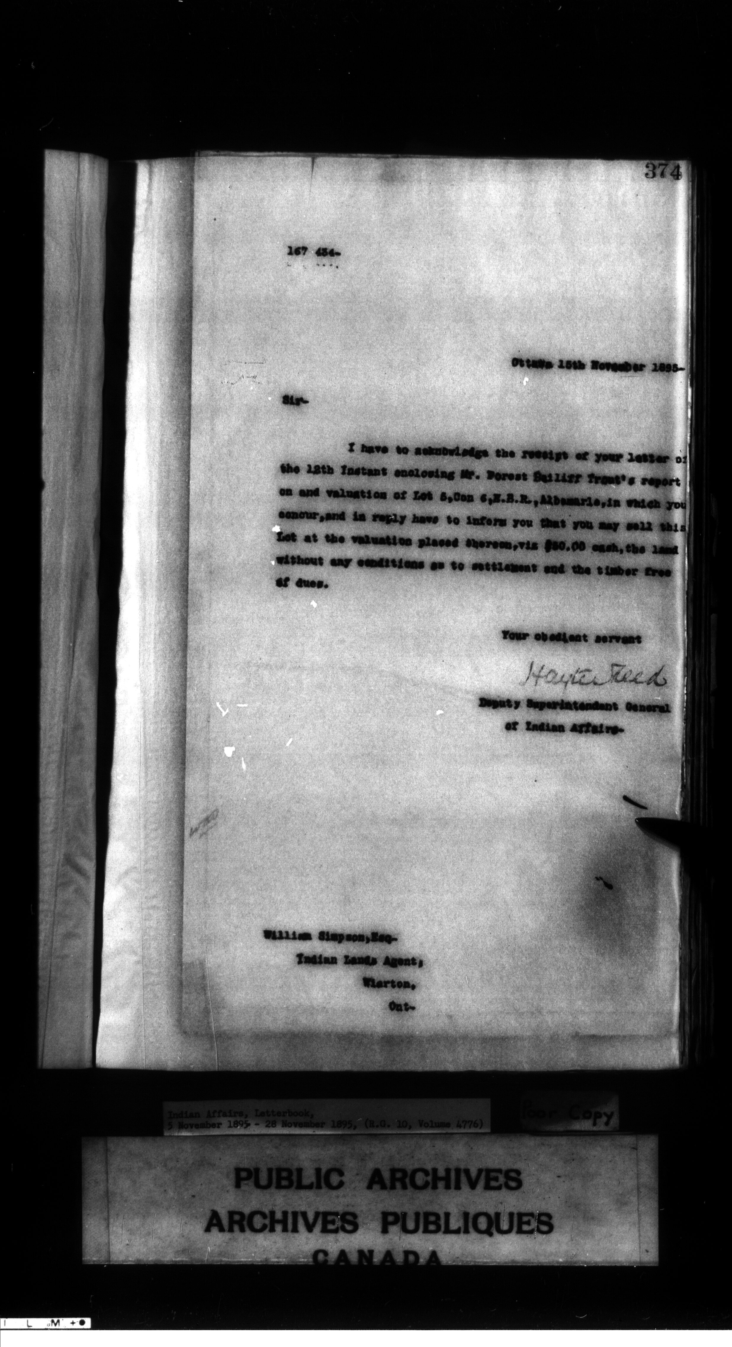 Indian Affairs, Letterbook, 5 November 1895 - 28 November 1895