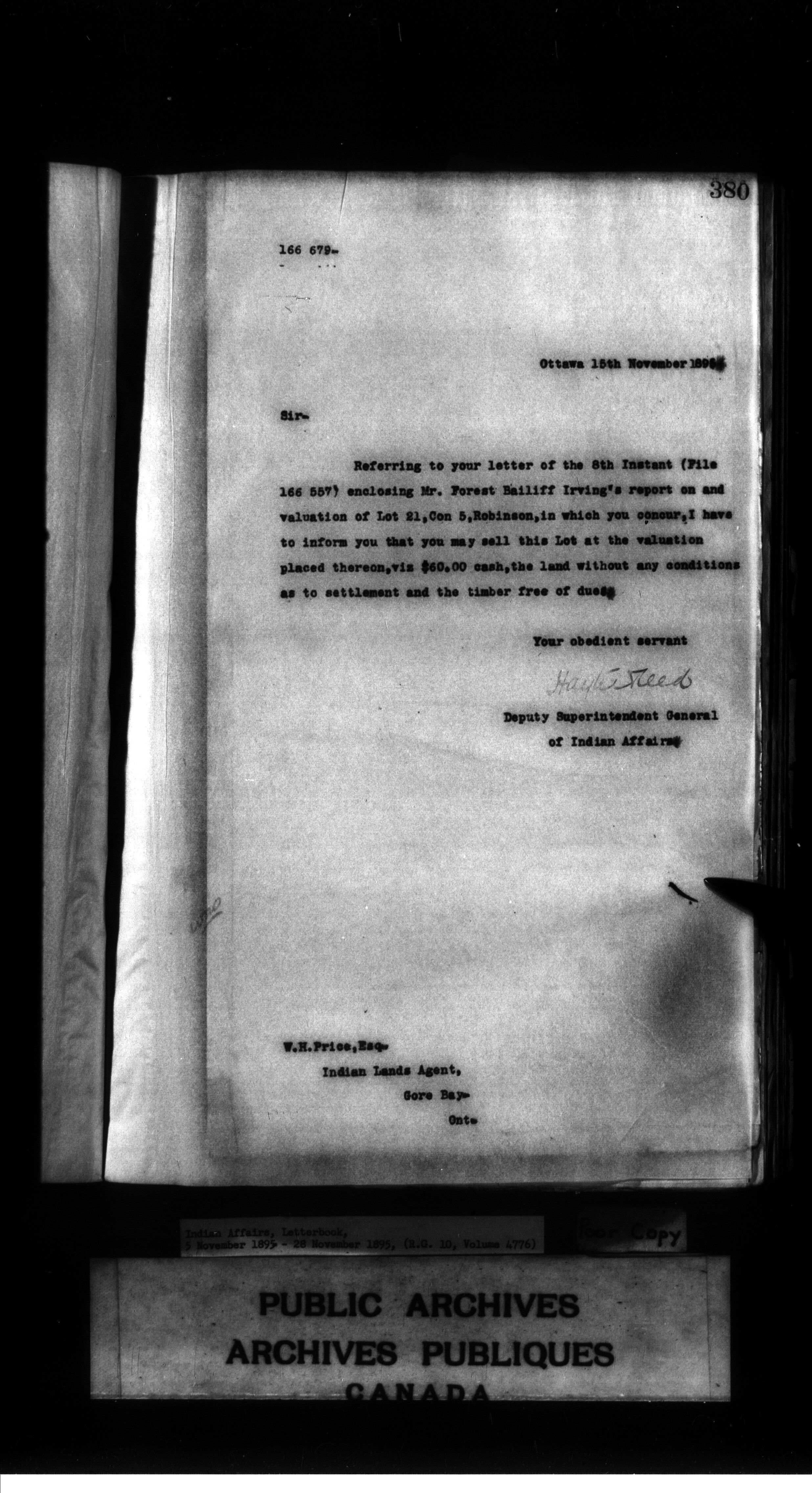 Indian Affairs, Letterbook, 5 November 1895 - 28 November 1895